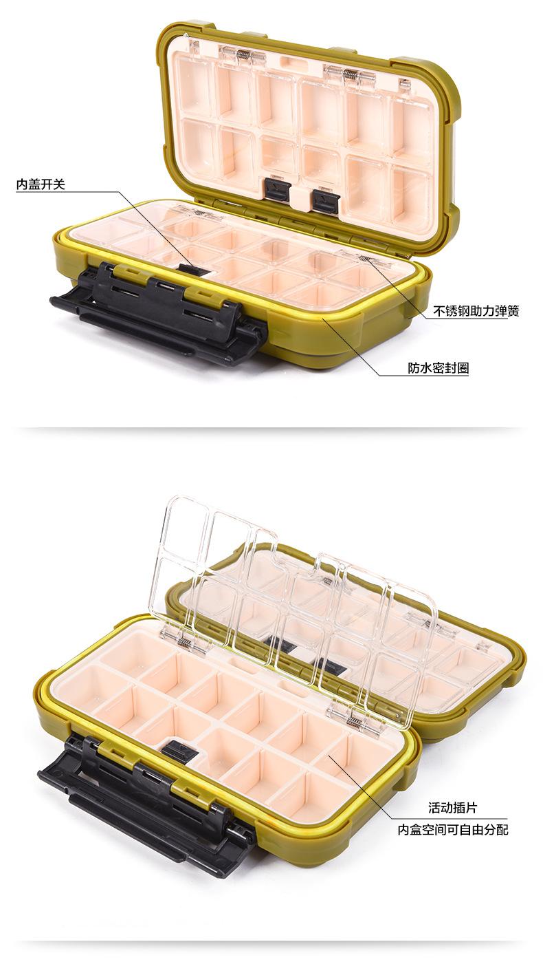 Características: Esta caja de accesorios adopta un diseño resistente a la presión e impermeable para proteger y almacenar eficazmente sus accesorios de pesca favoritos.