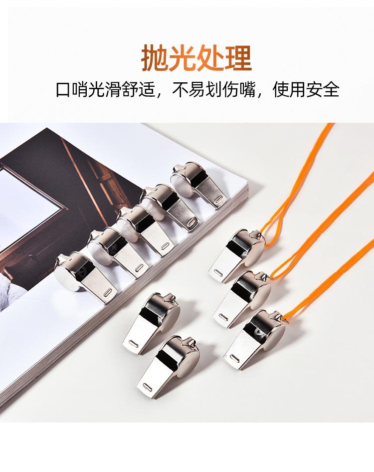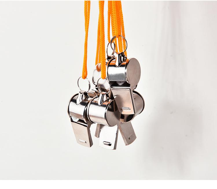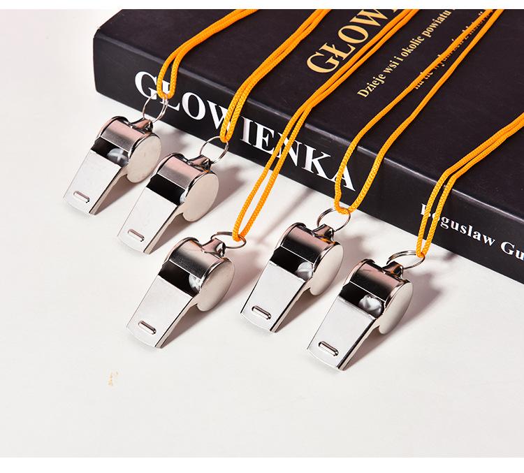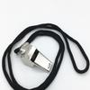 Silbato de metal con cuerda al por mayor silbato de árbitro para ayuda, juegos deportivos en casa, silbato cubierto en el borde se puede probar