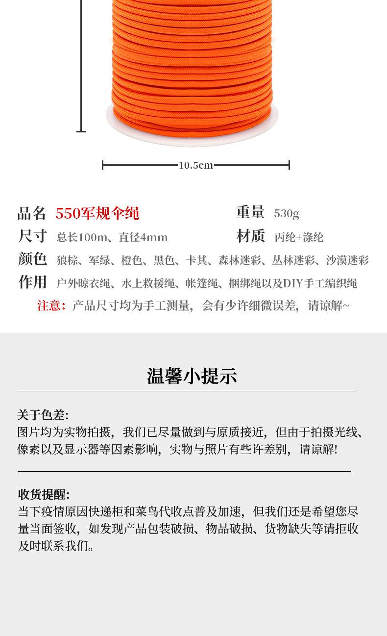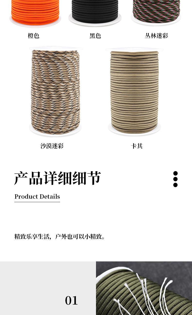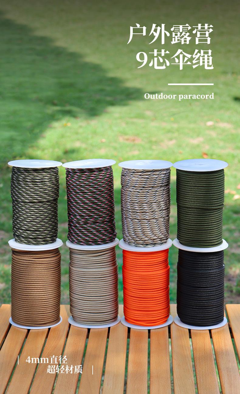 Cuerda para tienda de campaña de 9 núcleos 550 para exteriores, 100 m, paracaídas de tracción, rescate, cuerda de escalada