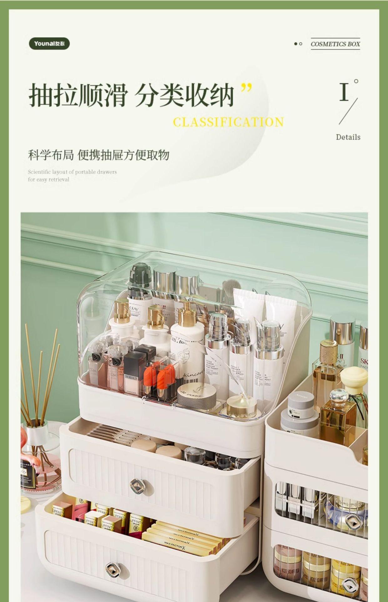 Caja de almacenamiento de cosméticos de escritorio, tocador, estante para el cuidado de la piel, cajón, mesa, caja de almacenamiento de joyas