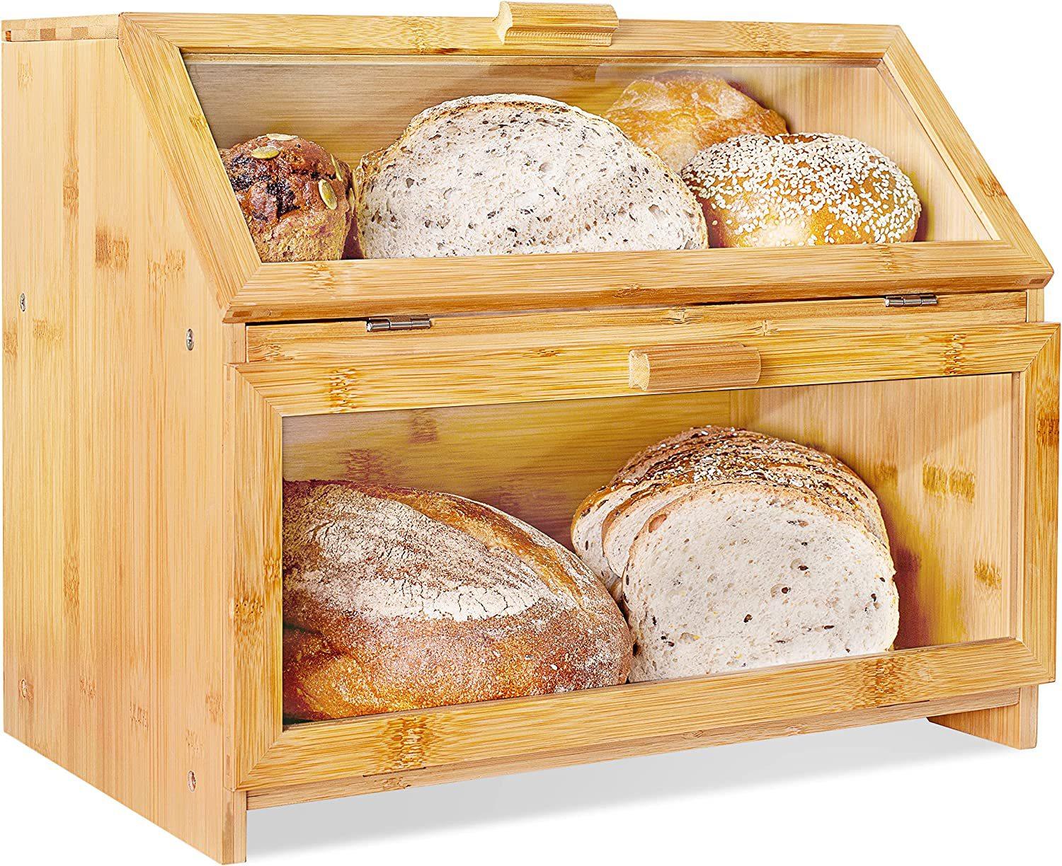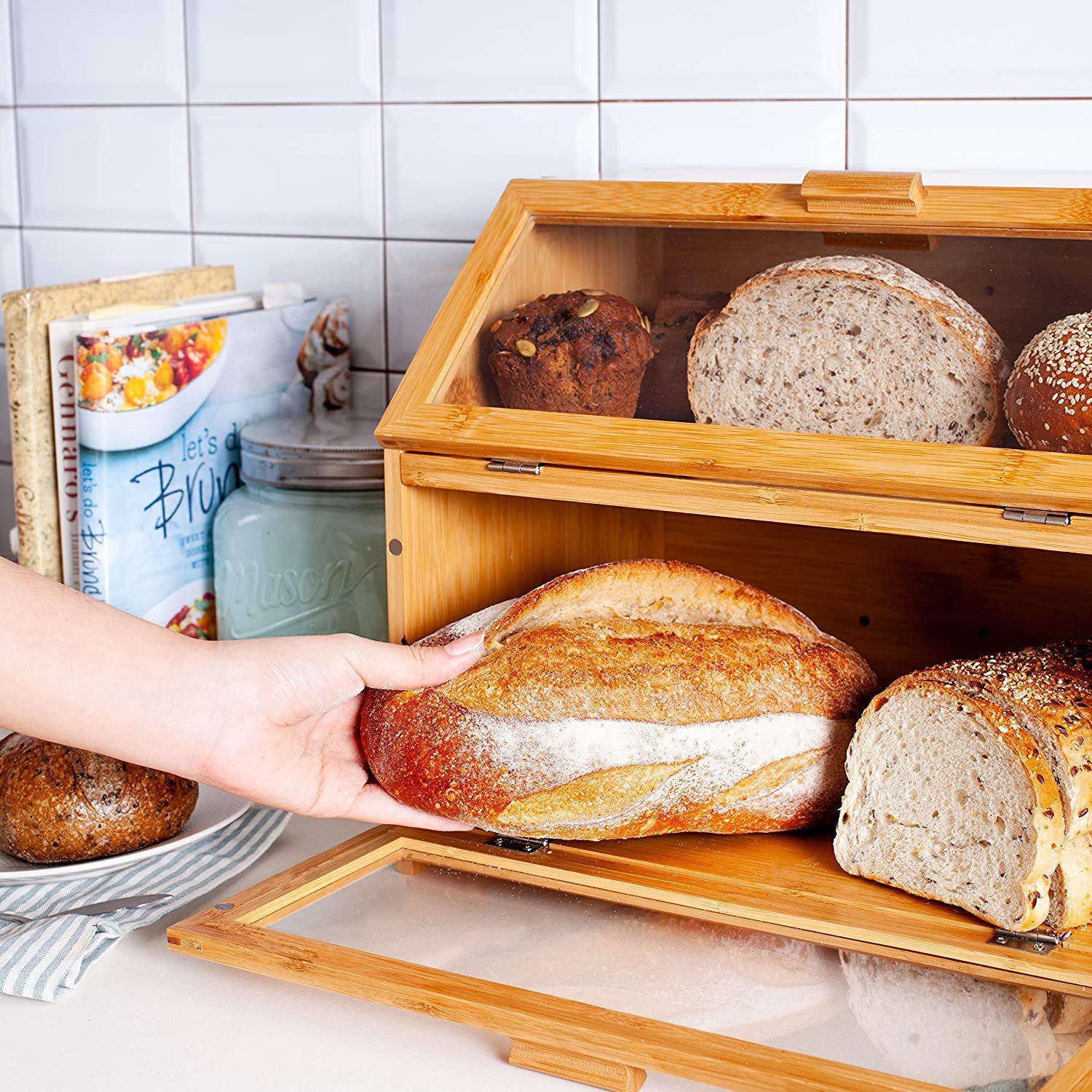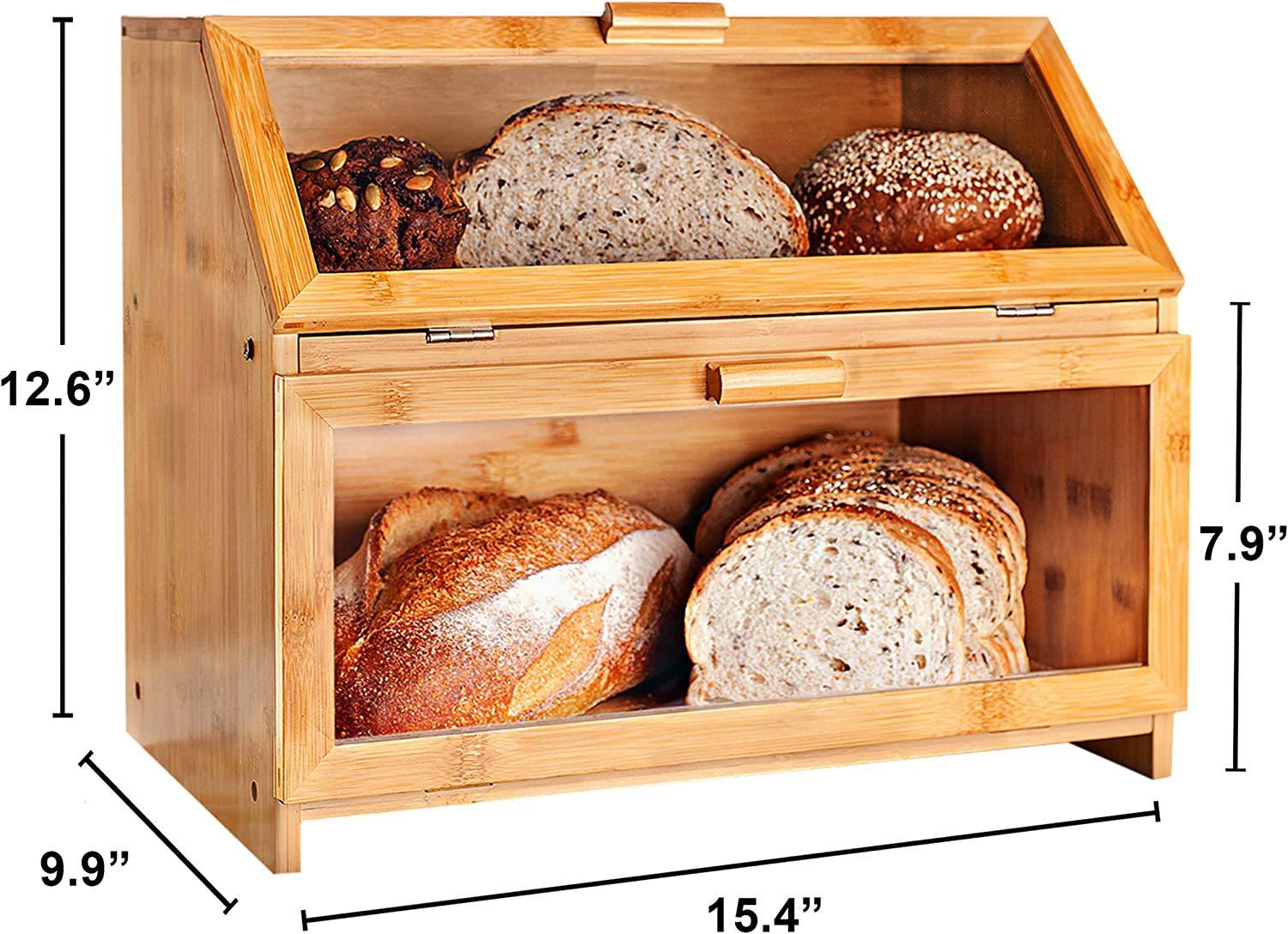 Panera de Bambú de Doble Capa para Almacenamiento de Pan, Caja de Almacenamiento de Snacks para Cocina Doméstica de Escritorio, Gran Capacidad