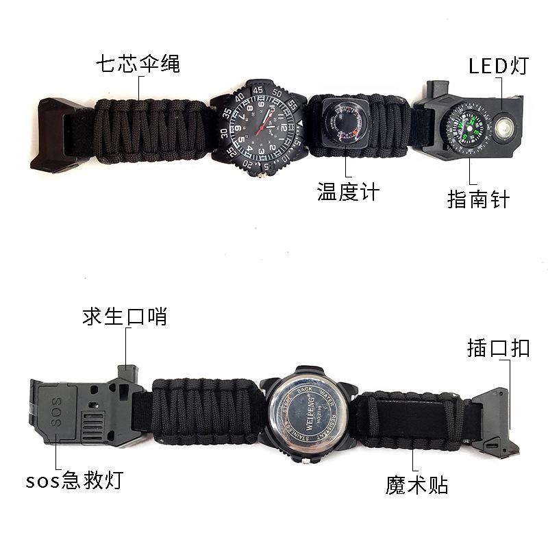 Suministros para acampada al aire libre supervivencia de emergencia cuerda de paracaídas de siete núcleos tejido reloj de montañismo reloj multifunción venta al por mayor