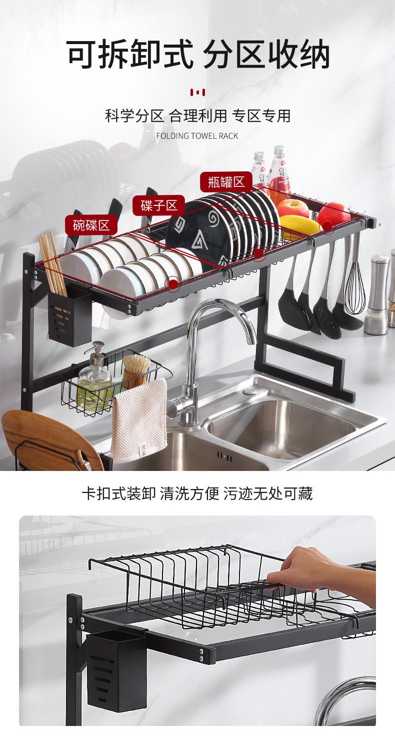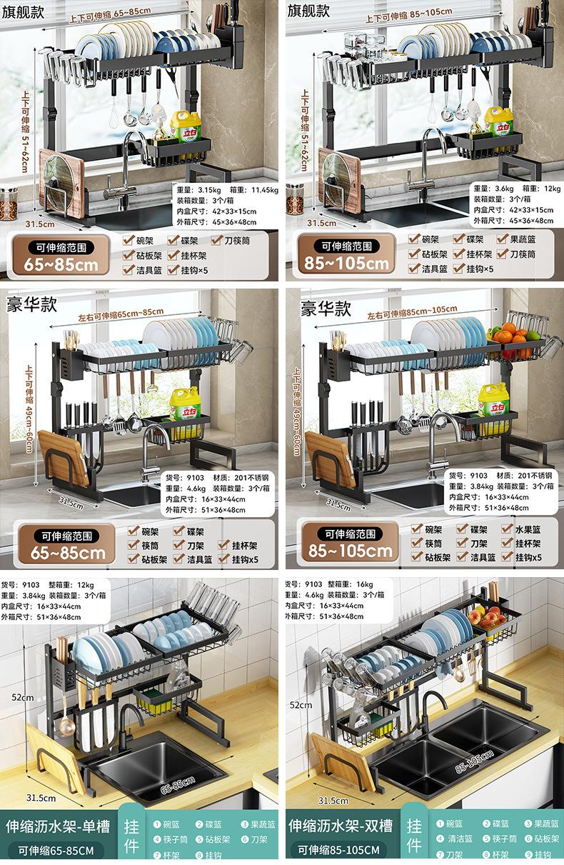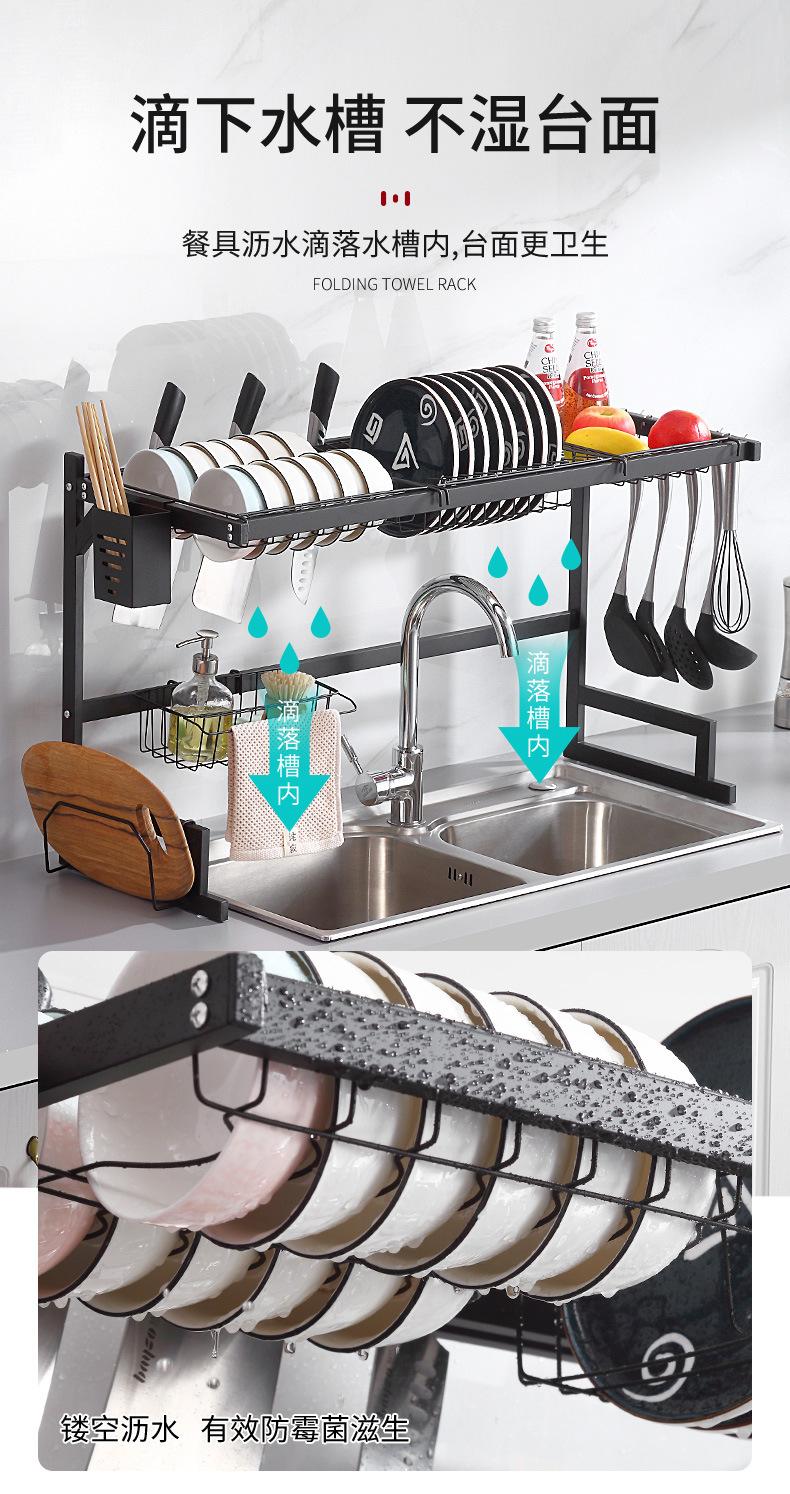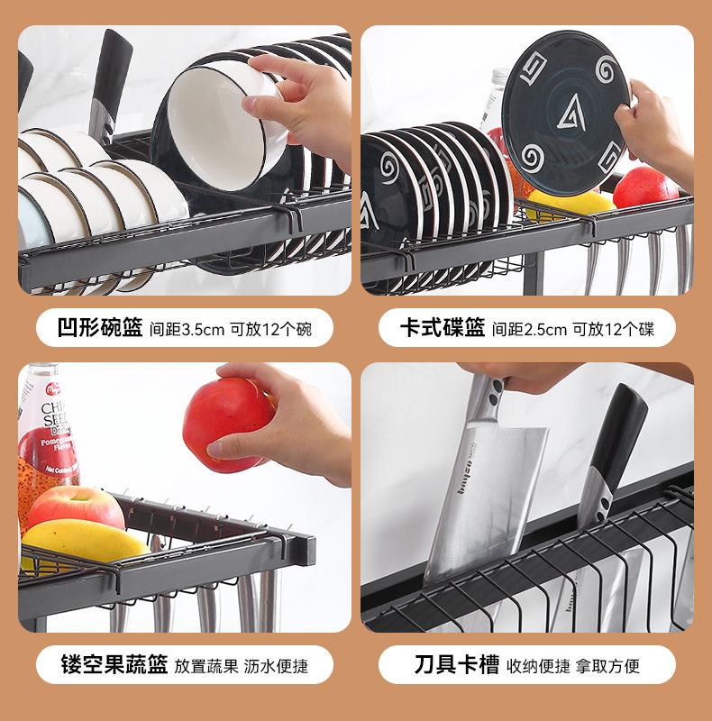 Escurridor de Platos Doméstico Transfronterizo Fregadero de Cocina Fregadero Mesa Vajilla Estante de Almacenamiento Multifuncional de Acero al Carbono en Capas