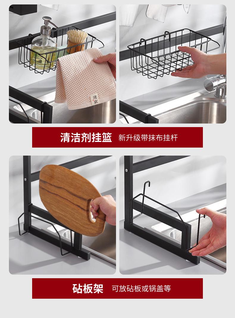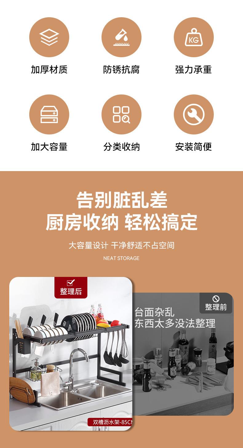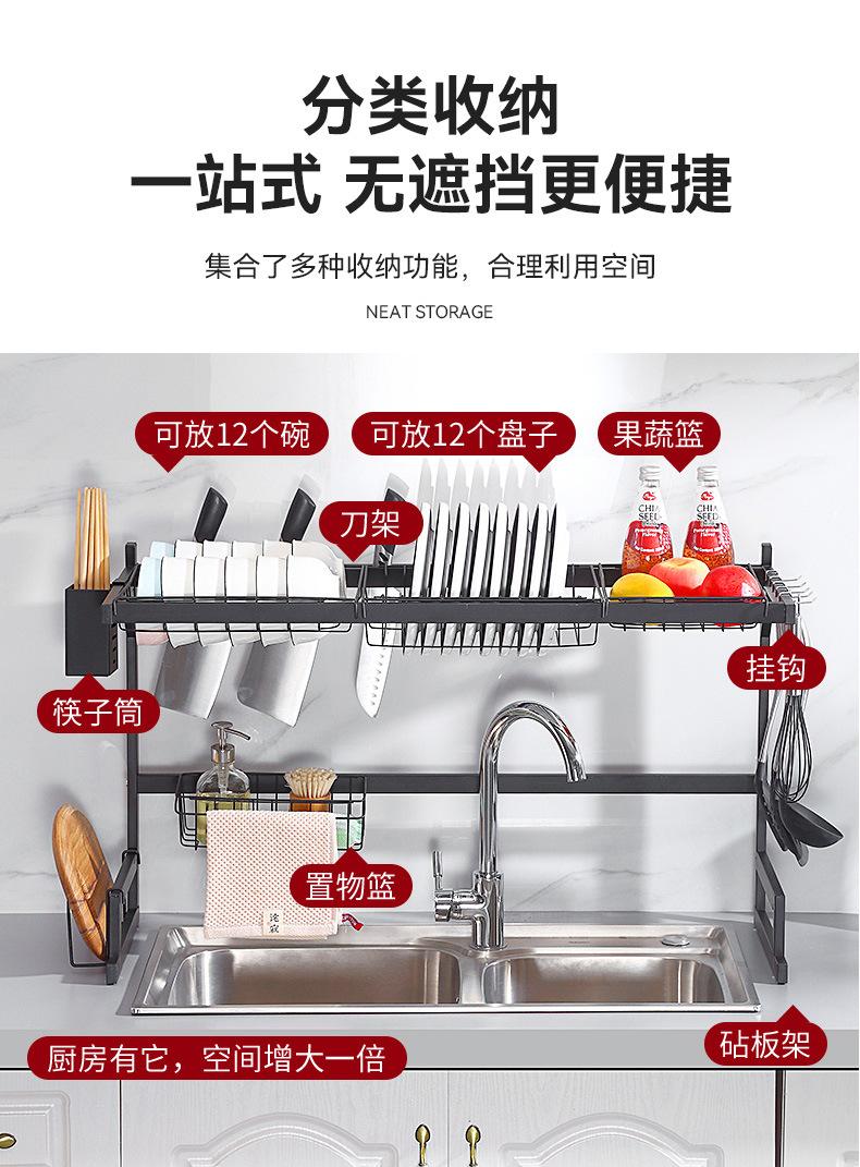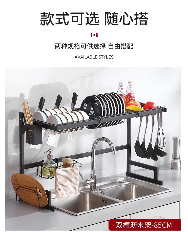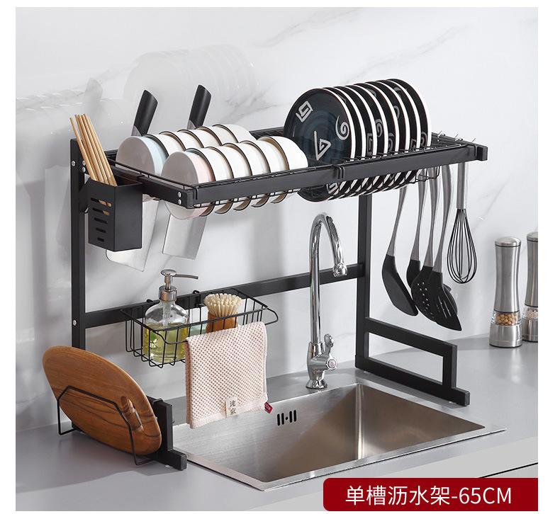 Escurridor de Platos Doméstico Transfronterizo Fregadero de Cocina Fregadero Mesa Vajilla Estante de Almacenamiento Multifuncional de Acero al Carbono en Capas