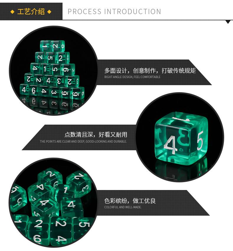 Nuestra fábrica se especializa en la fabricación de dados de alta gama de 8 mm a 100 mm con esquinas redondeadas, esquinas cuadradas y múltiples caras. Contamos con ingenieros de fabricación con más de diez años de experiencia en producción, tecnología de pulido de vanguardia y equipos de producción de última generación. Los dados de 8 mm a 25 mm se producen principalmente en plástico.