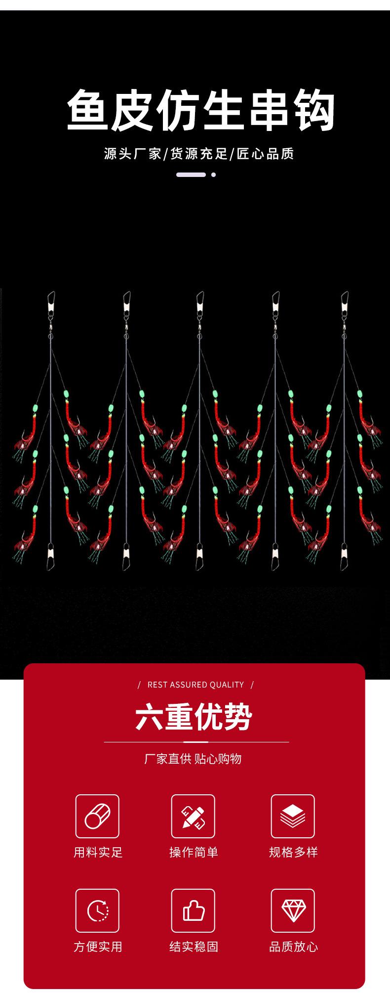 Anzuelo de piel de pez biónico, anzuelo de pesca amartillado Luya, cebo falso, accesorios de pesca, tira blanca luminosa, anzuelo de cebo falso, grupo de pesca