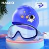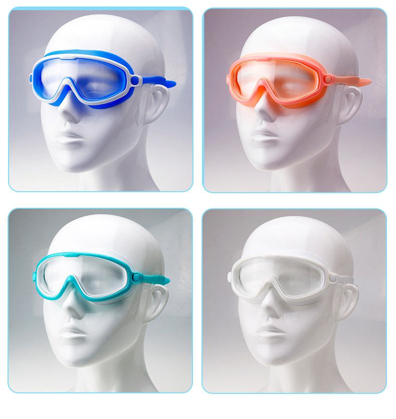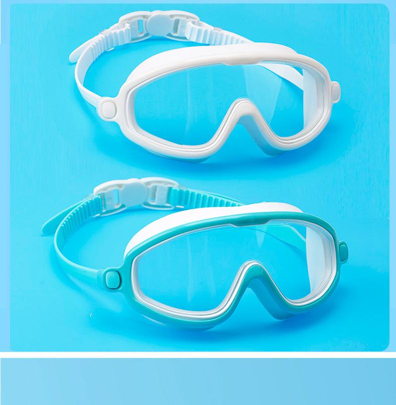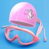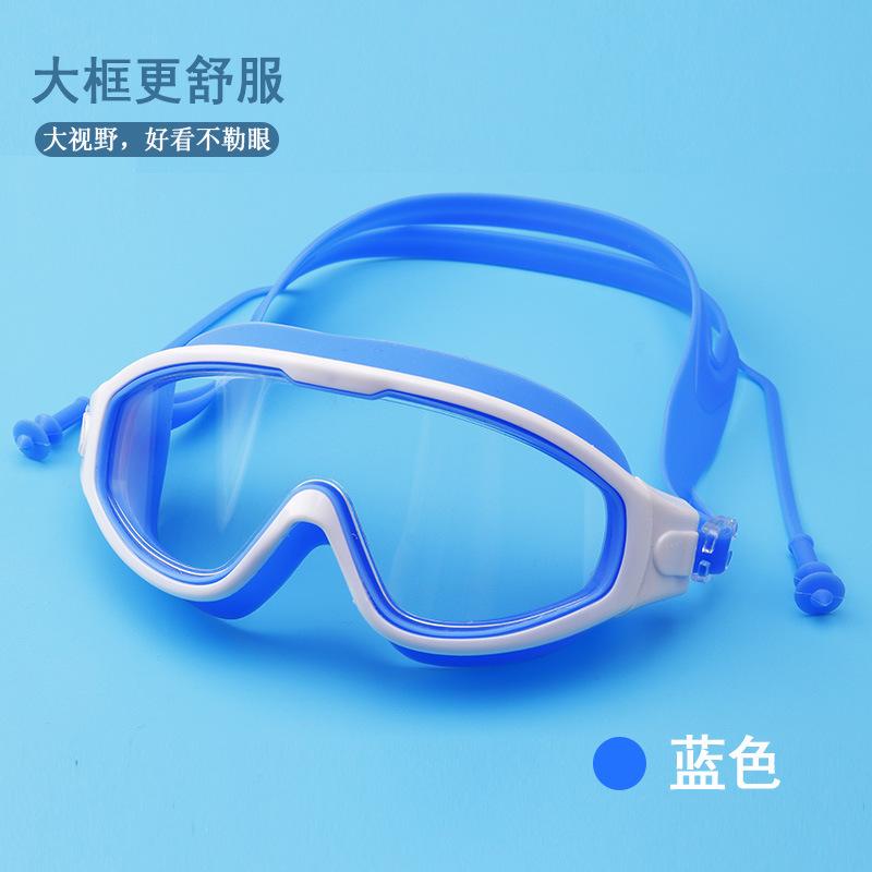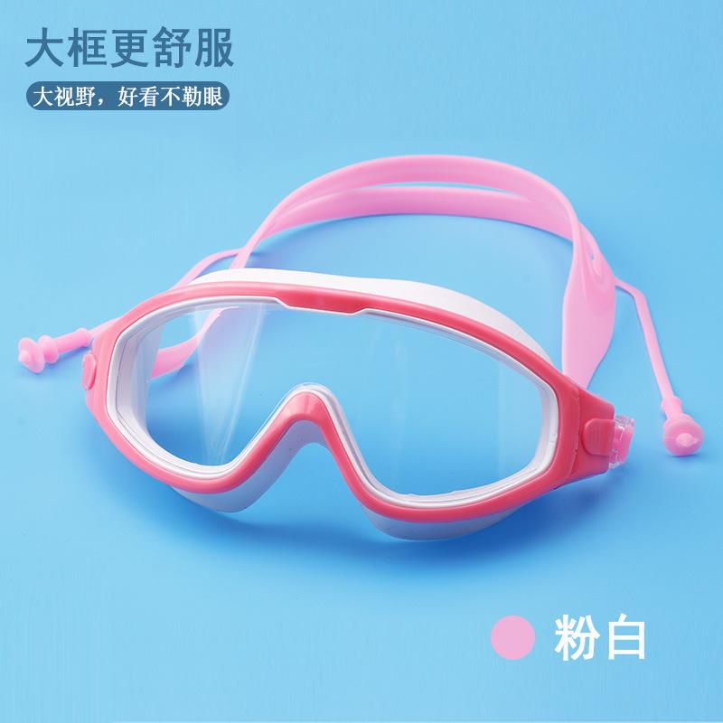 Gafas de natación para niños de montura grande con tapones para los oídos, traje de valor con gorro de natación, gafas impermeables de silicona antivaho que no aprietan los ojos para niños y niñas