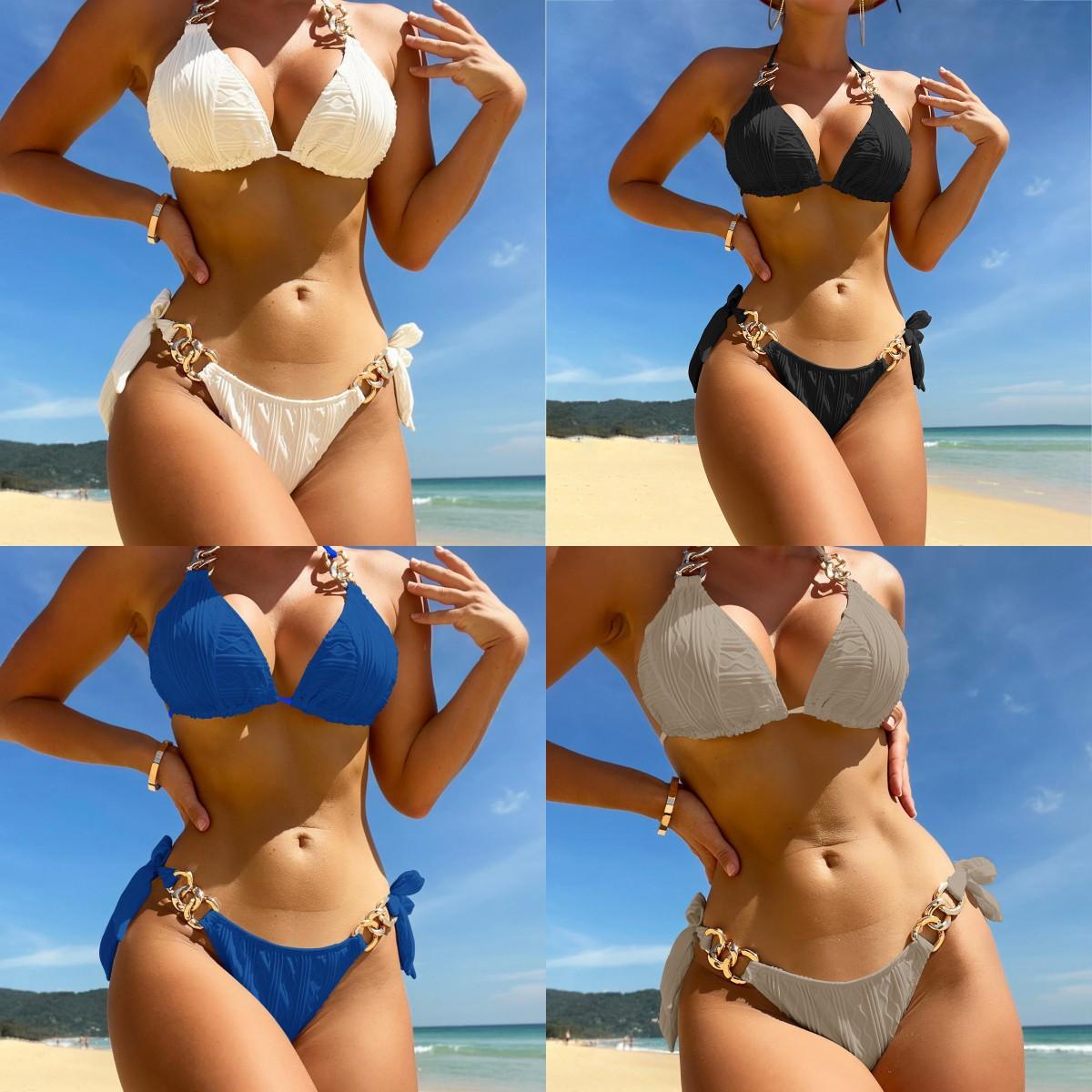 Traje de Baño Casual de Nuevo Estilo con Almohadillas para el Busto, Traje de Baño Dividido para Mujer Sexy y a la Moda, Traje de Baño de Color Sólido Europeo y Americano, Fábrica Mayorista