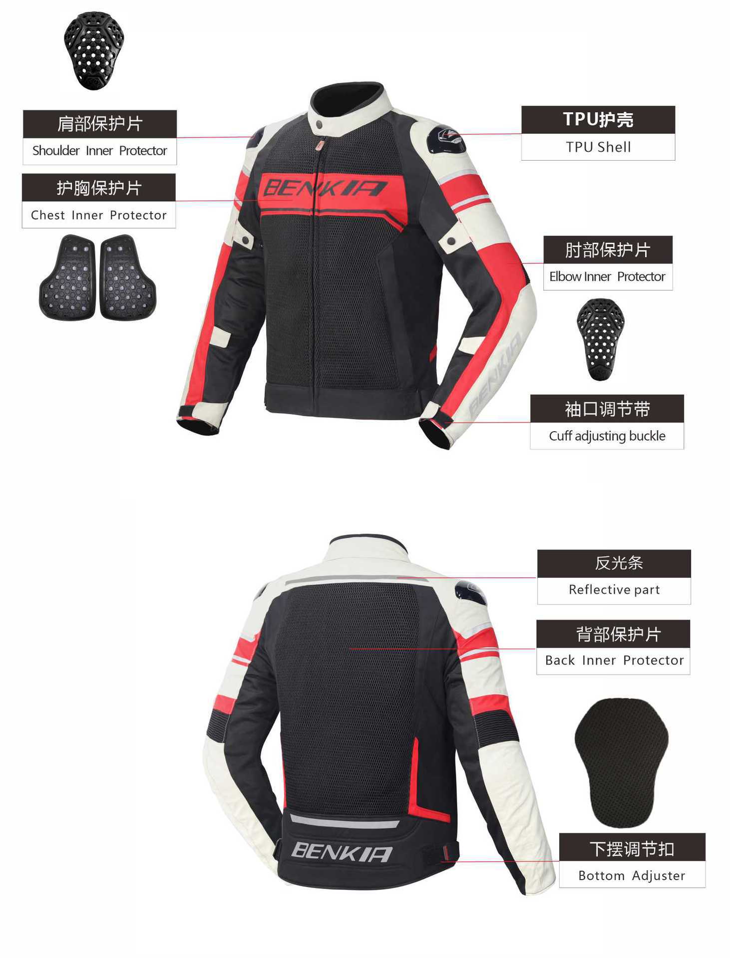 Traje de motociclista BENKIA, traje de carreras de verano, traje de motociclista pesado anticaída, traje de motociclista para hombre de malla transpirable
