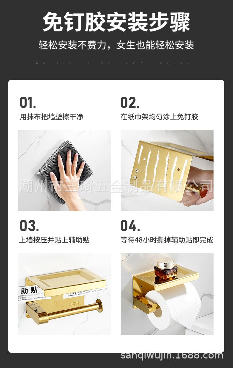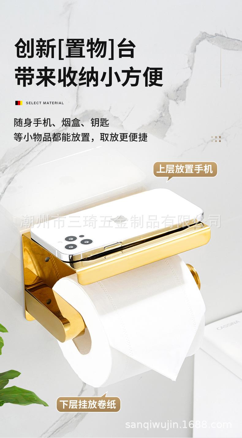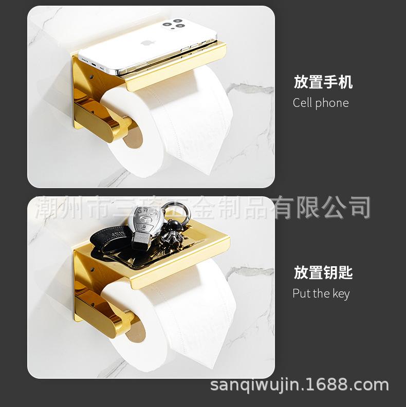 Portarrollos de Papel de Acero Inoxidable 304 Transfronterizo sin Perforaciones para Ingeniería Hotelera, Soporte para Teléfono Móvil para Baño, Estante de Almacenamiento para Papel Higiénico