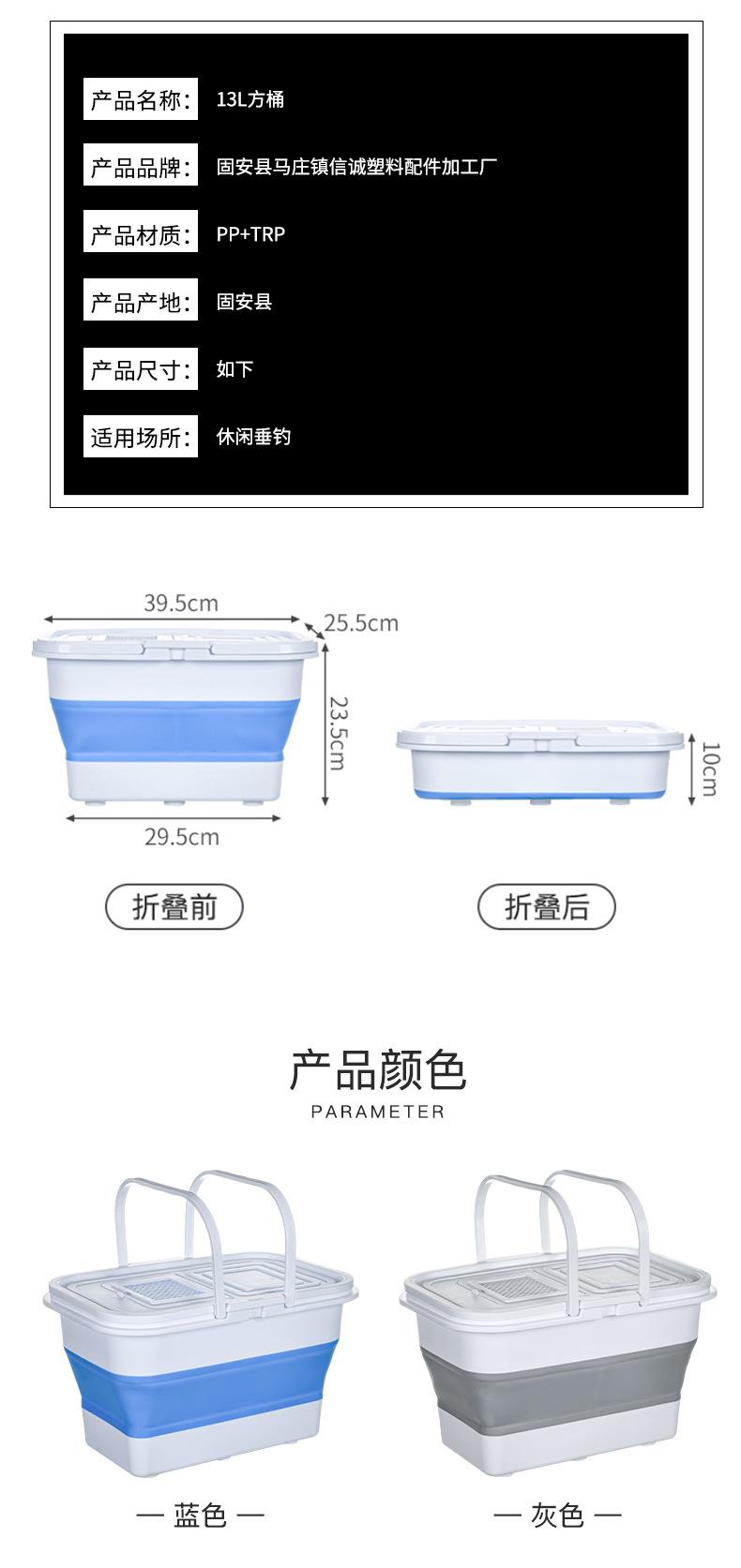 Cubo de pesca plegable cuadrado para exteriores, cubo portátil de plástico de silicona de fondo duro, cubo para peces vivos, venta al por mayor de aparejos de pesca