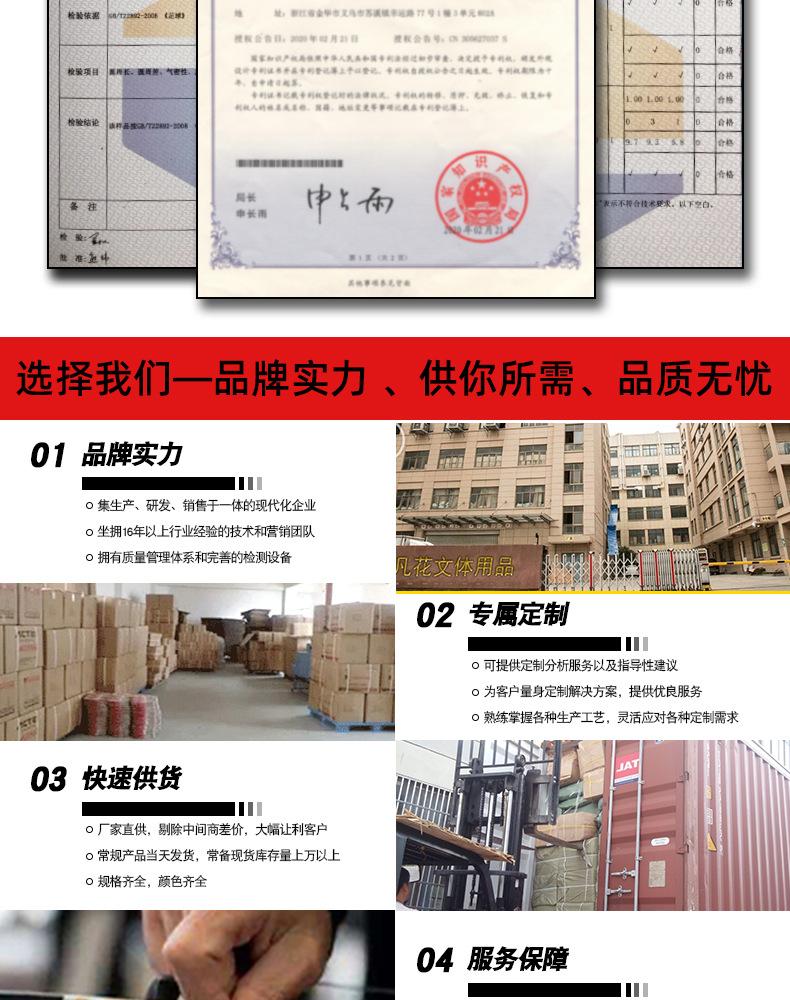YiWu FanHua Culture & Sport Co., Ltd. es un fabricante y exportador profesional especializado en el diseño, desarrollo y producción de artículos deportivos y brinda servicios de agencia de compras. Métodos comerciales disponibles: EXW/FOB/CIF/DAP/DDP, certificación de producto CE, EN71-1-3, etc.