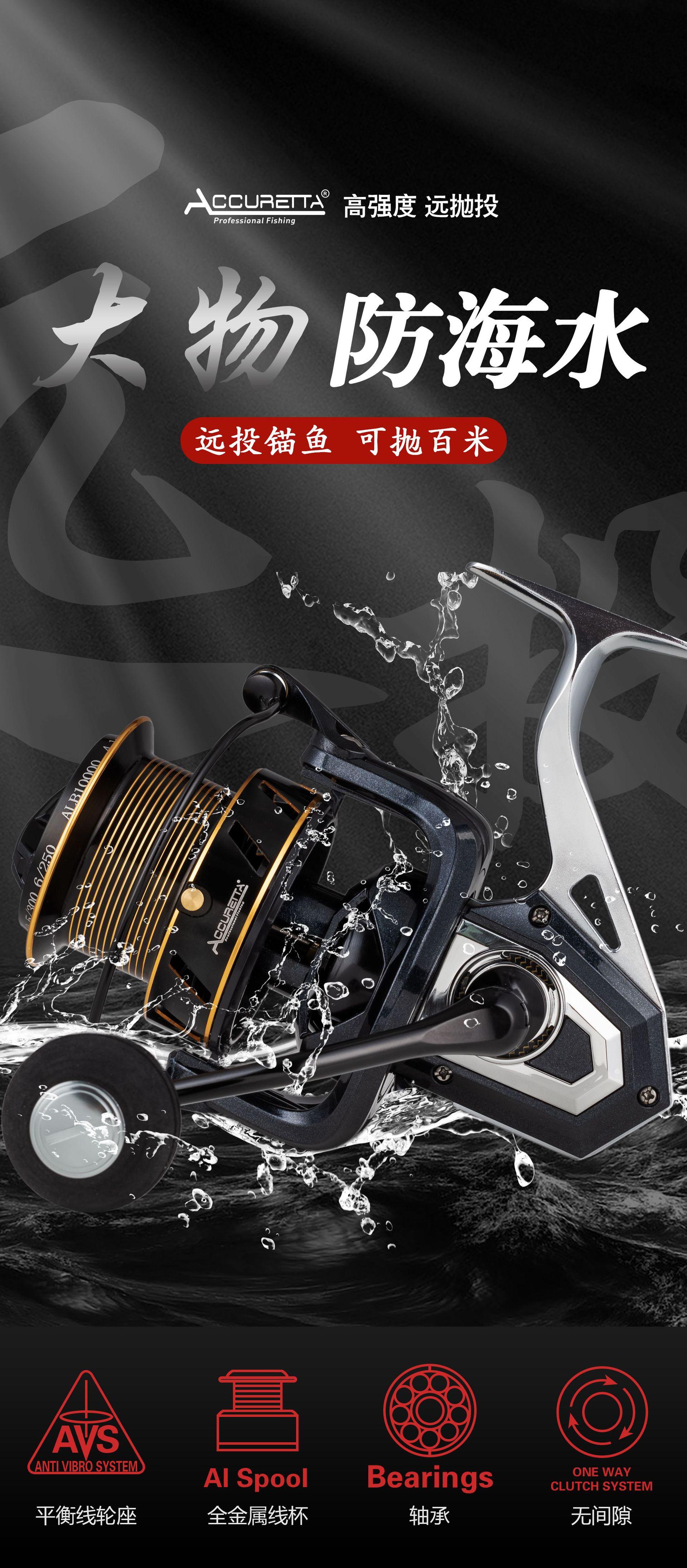 Carrete de pesca Accuretta nuevo ALB, rueda de pesca de largo alcance totalmente metálica, rueda de pesca, rueda giratoria, balsa de pesca, rueda de pesca, ancla, pez