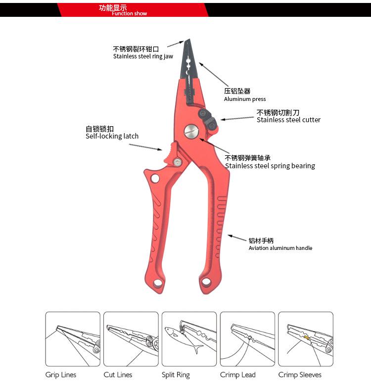 Juego de control de señuelos de pesca de aleación de aluminio con autobloqueo personalizado, alicates para recoger anzuelos, alicates de control de peces para exteriores, tijeras de pesca con control de peces