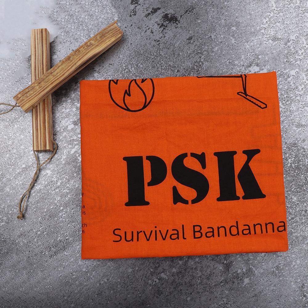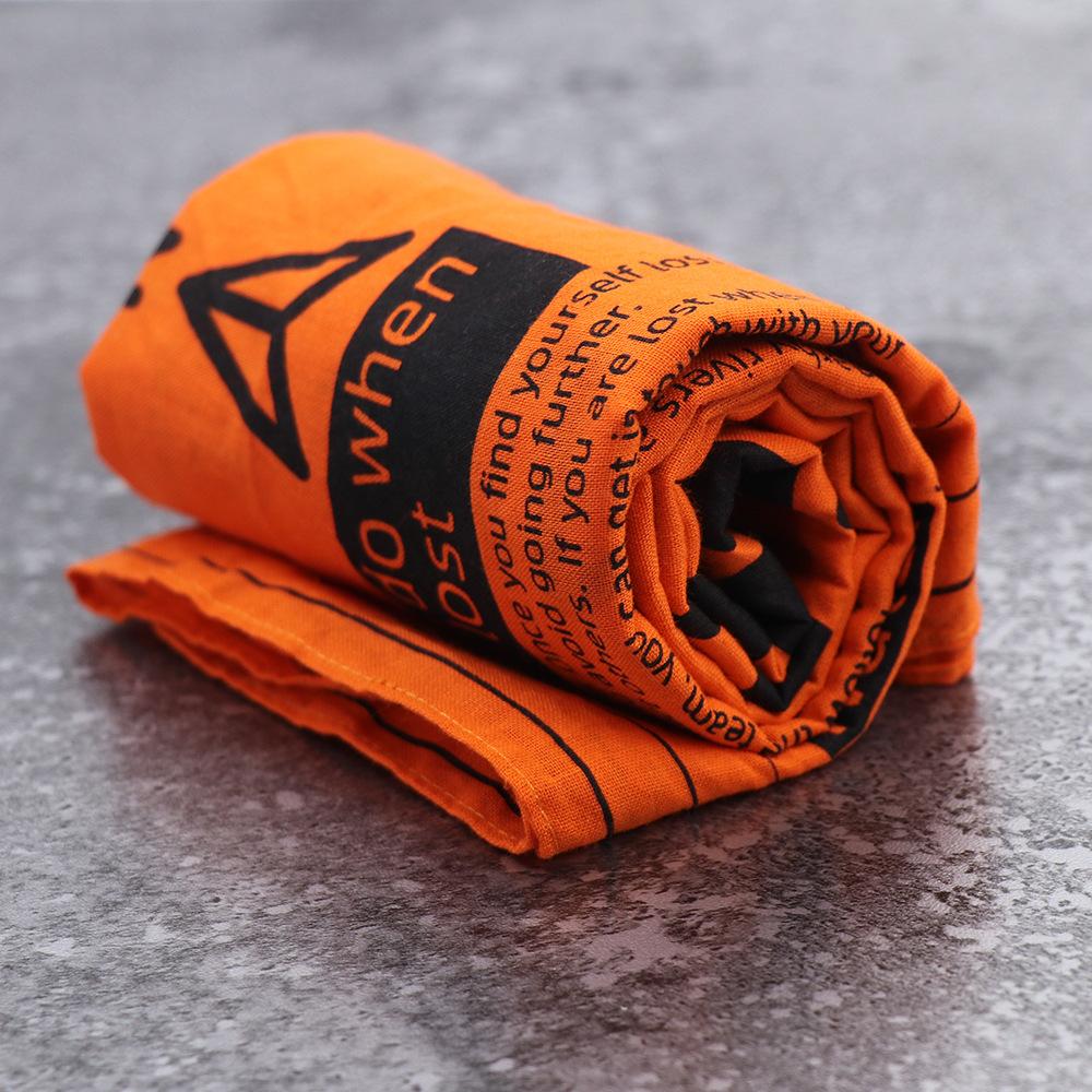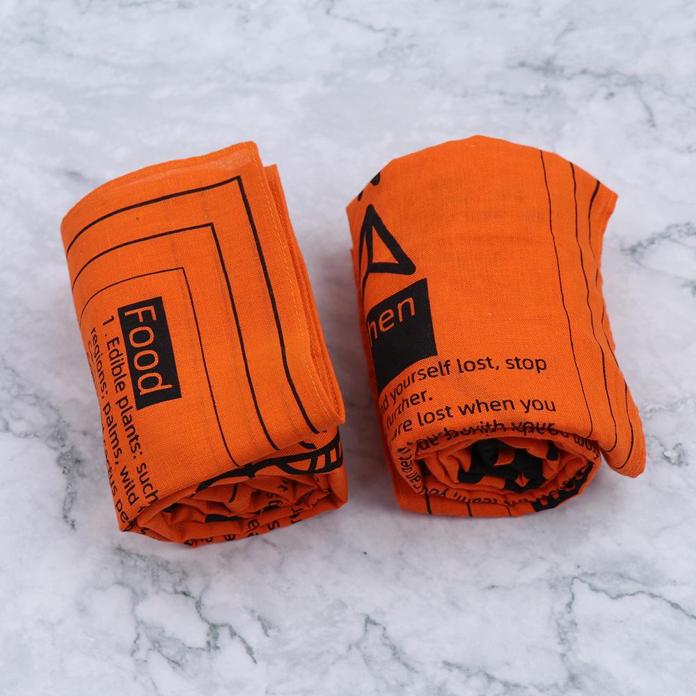 Función: Protector de cuello; diadema; muñequera; accesorio de bolsillo; pañuelo; máscara protectora solar, a prueba de polvo y viento; servilleta; el producto también está impreso con una guía de primeros auxilios al aire libre, que se puede usar para vendajes de emergencia después de una lesión; adecuado como regalo.