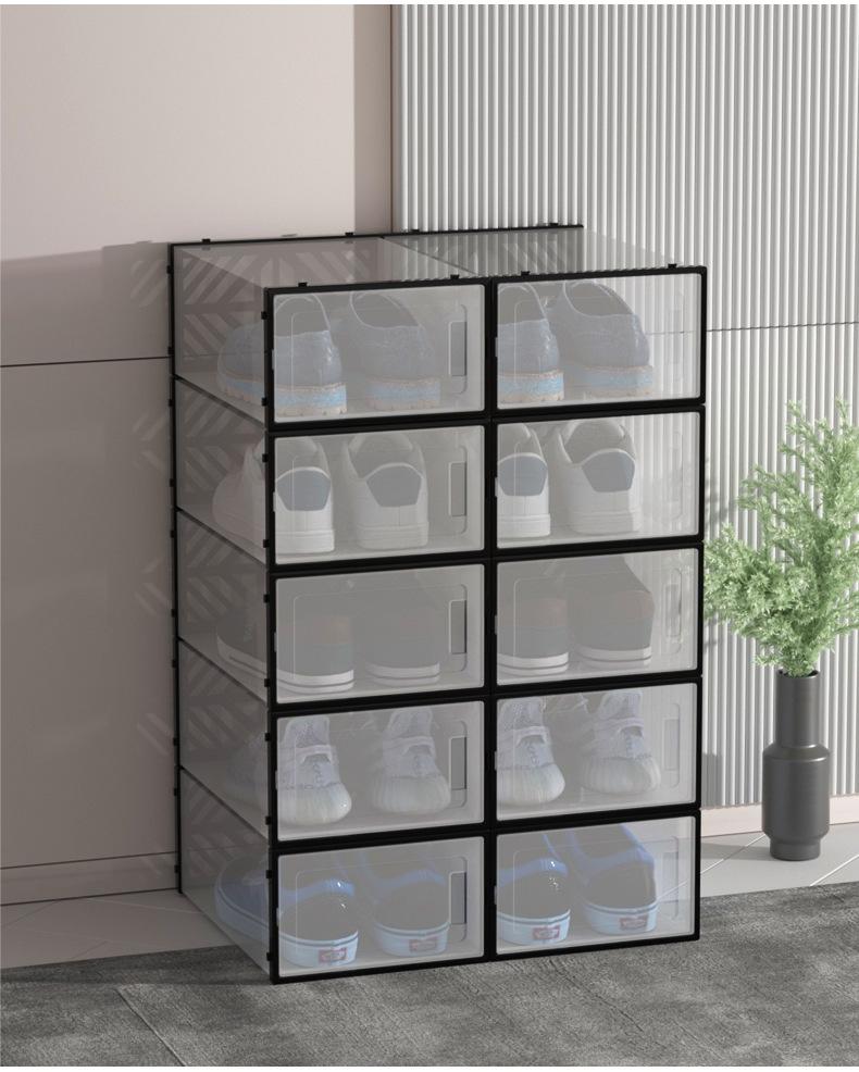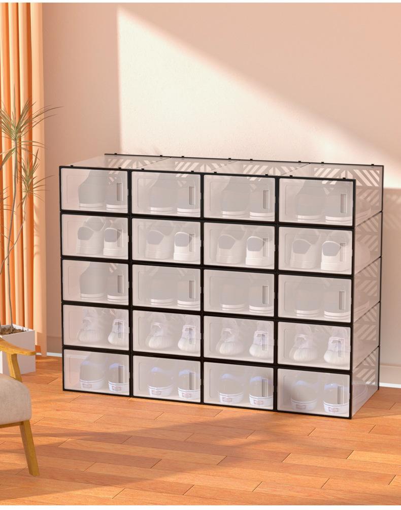 Caja de zapatos grande transparente y gruesa de fábrica, caja de almacenamiento de zapatos para el hogar, artefacto de almacenamiento con acabado multicapa, gabinete de zapatos plegable de plástico