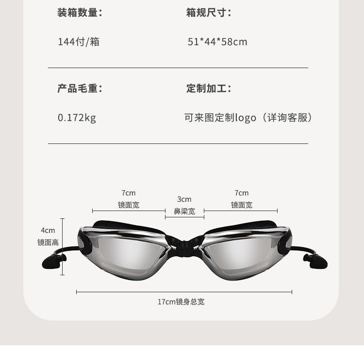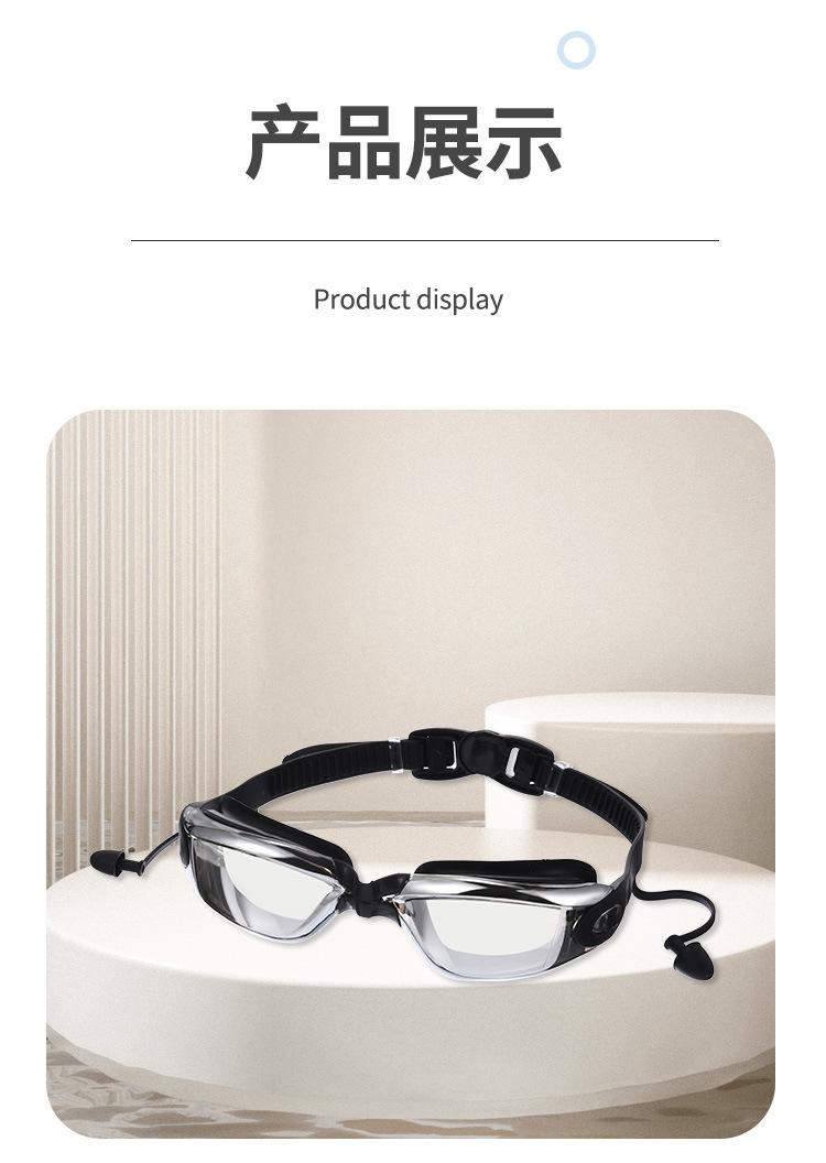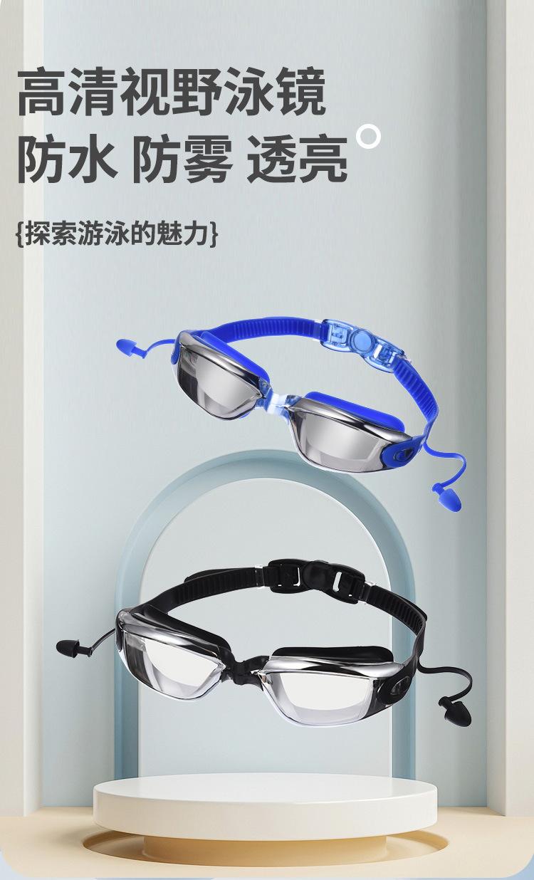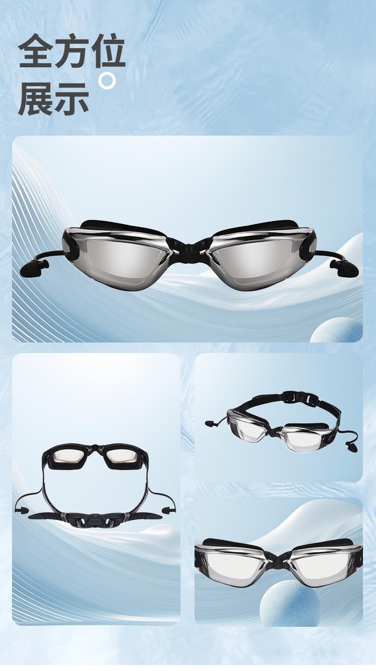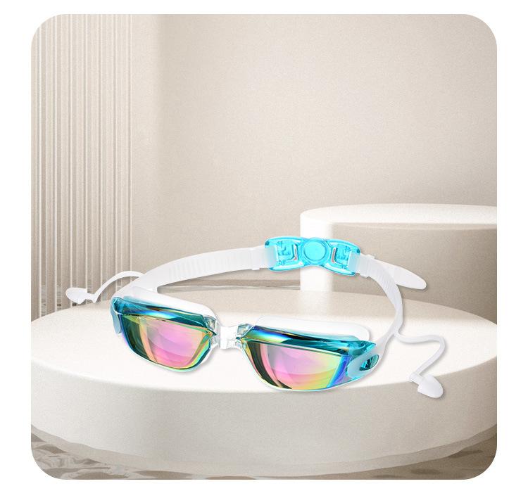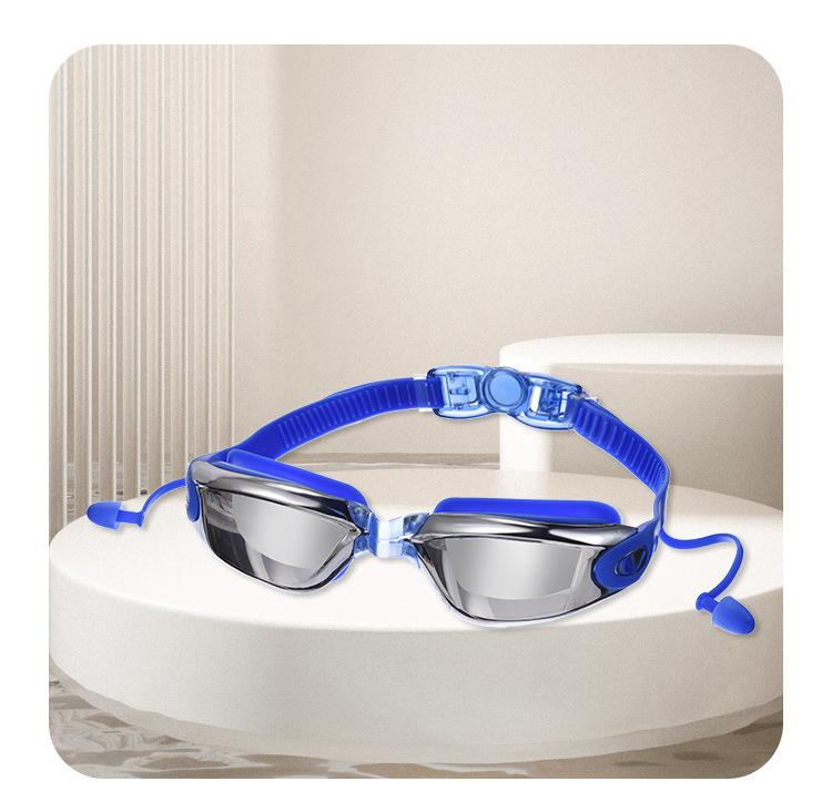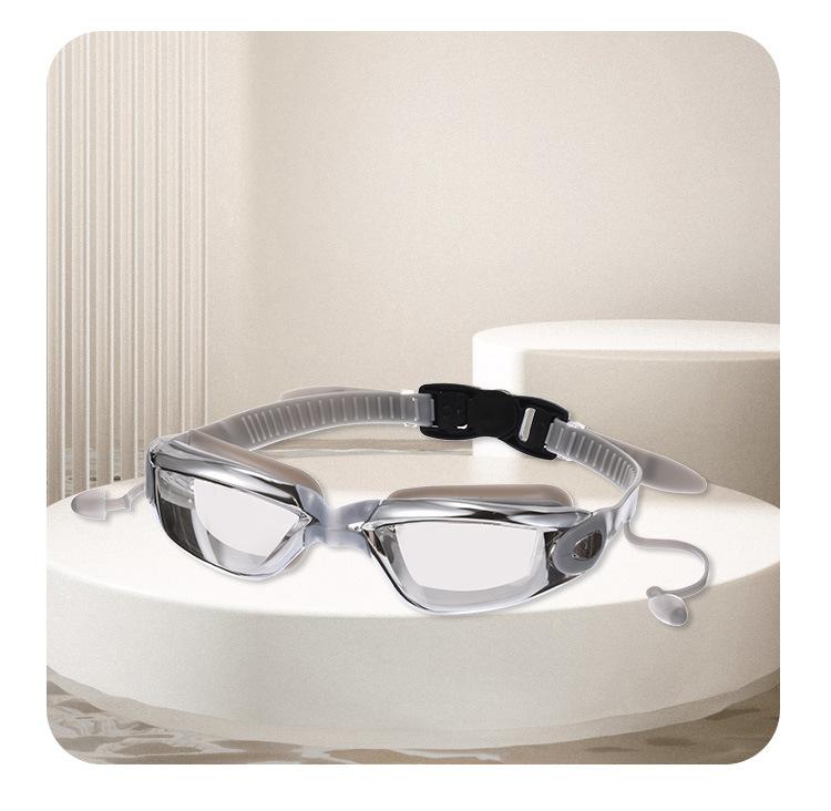 Gafas de natación con tapones para los oídos, gafas de natación antivaho HD integradas, gafas de buceo galvanizadas con montura grande para adultos, gafas de natación