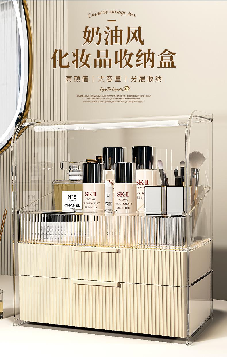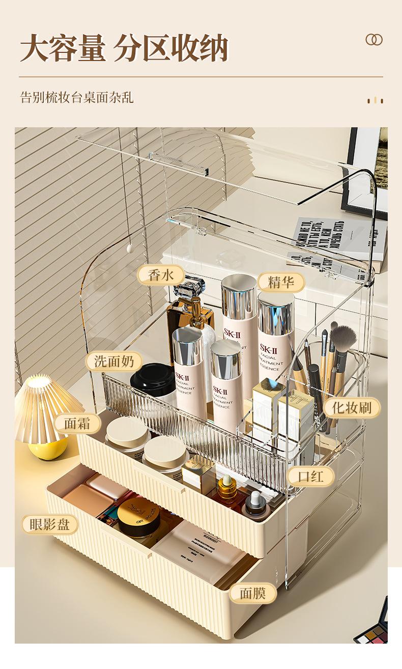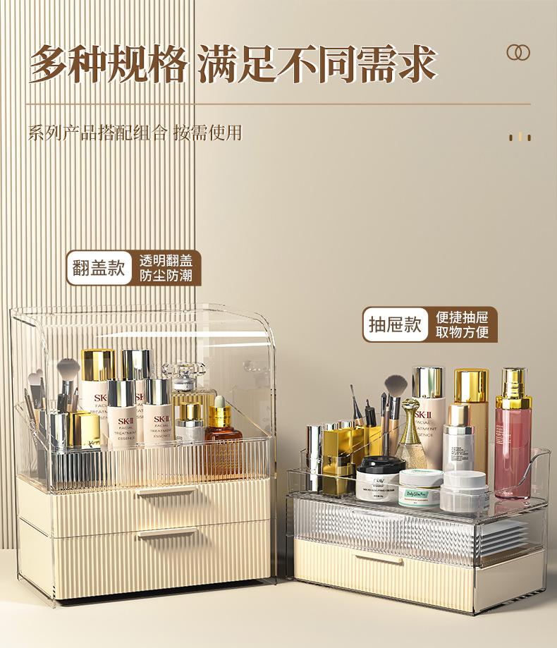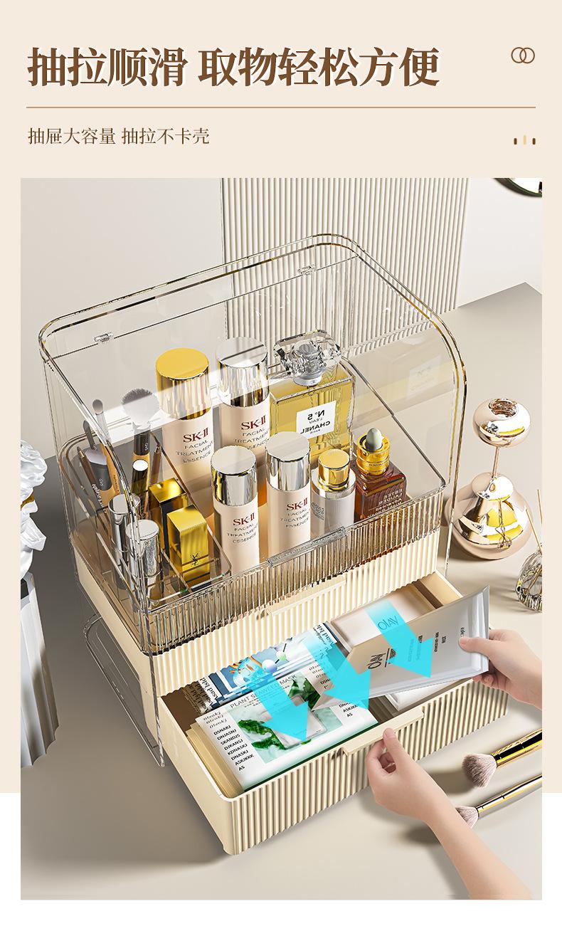Caja de almacenamiento de cosméticos a prueba de polvo, gran capacidad, caja de almacenamiento de escritorio, lápiz labial, cuidado de la piel, tocador, nuevo estante de almacenamiento de celebridades de Internet