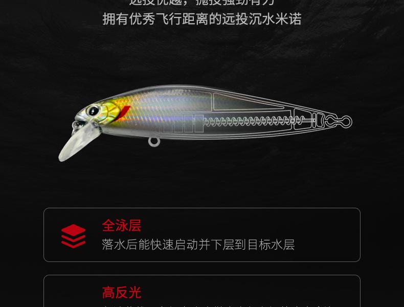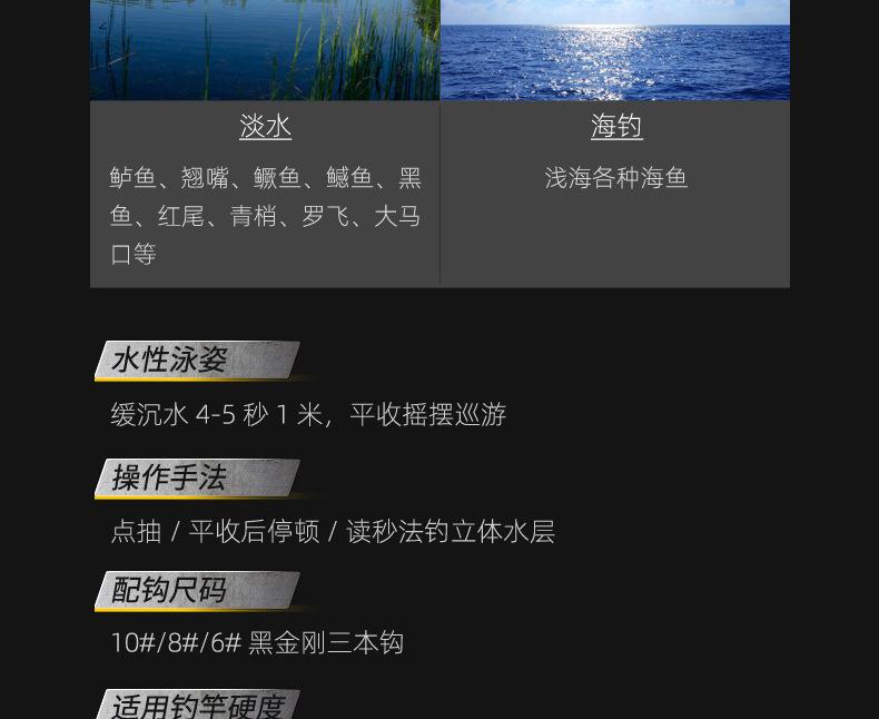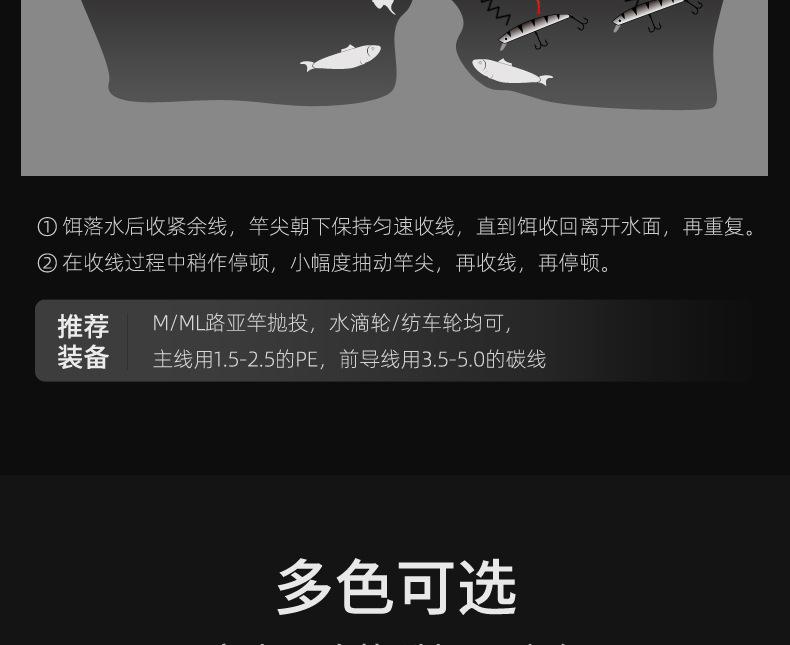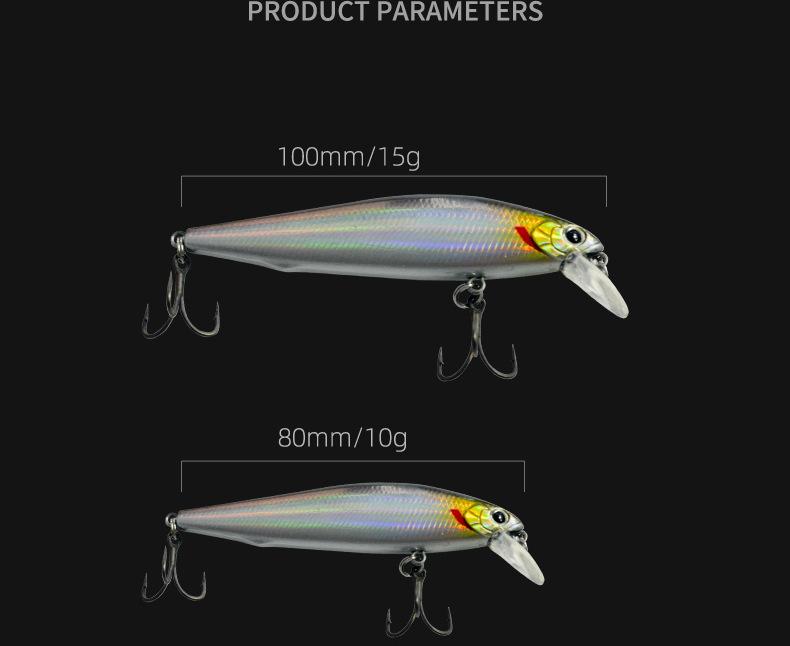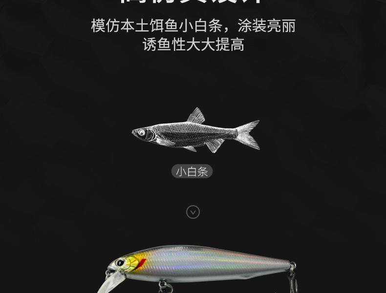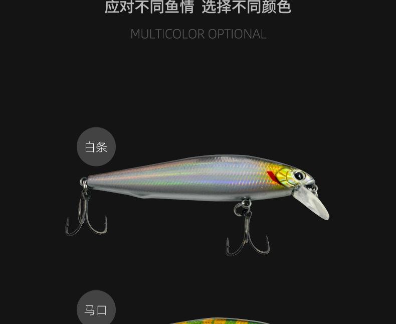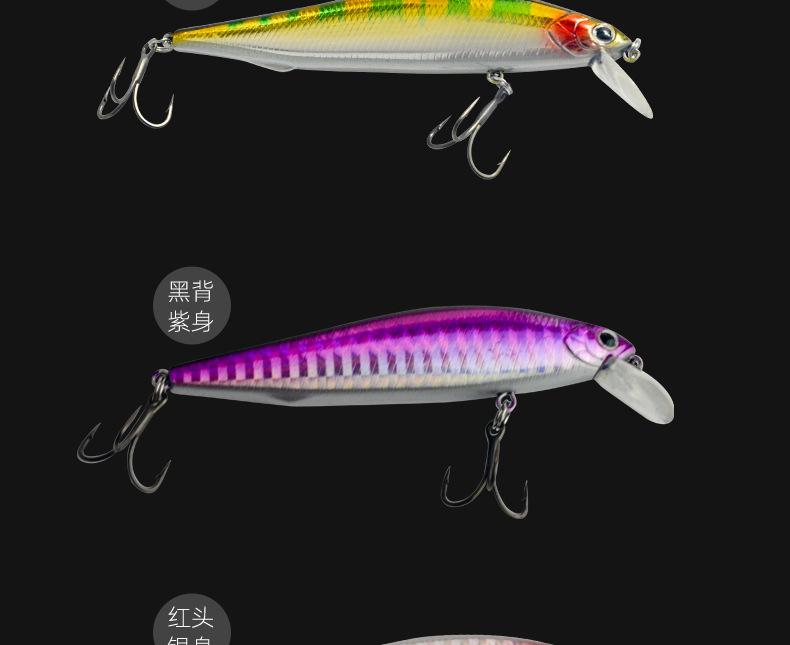 White stripe (6.5cm 7g), White (8.0cm 10g), White (10cm 15g), Black back purple body (6.5cm 7g), Black back pu...