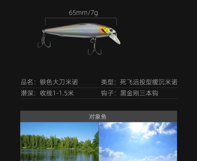Cebo falso Luya plateado Cebo Mino Luya Cebo Milo sumergido Pesca de lance lejano Artefacto de golpe pequeño Lubina Hundimiento lento de agua dulce