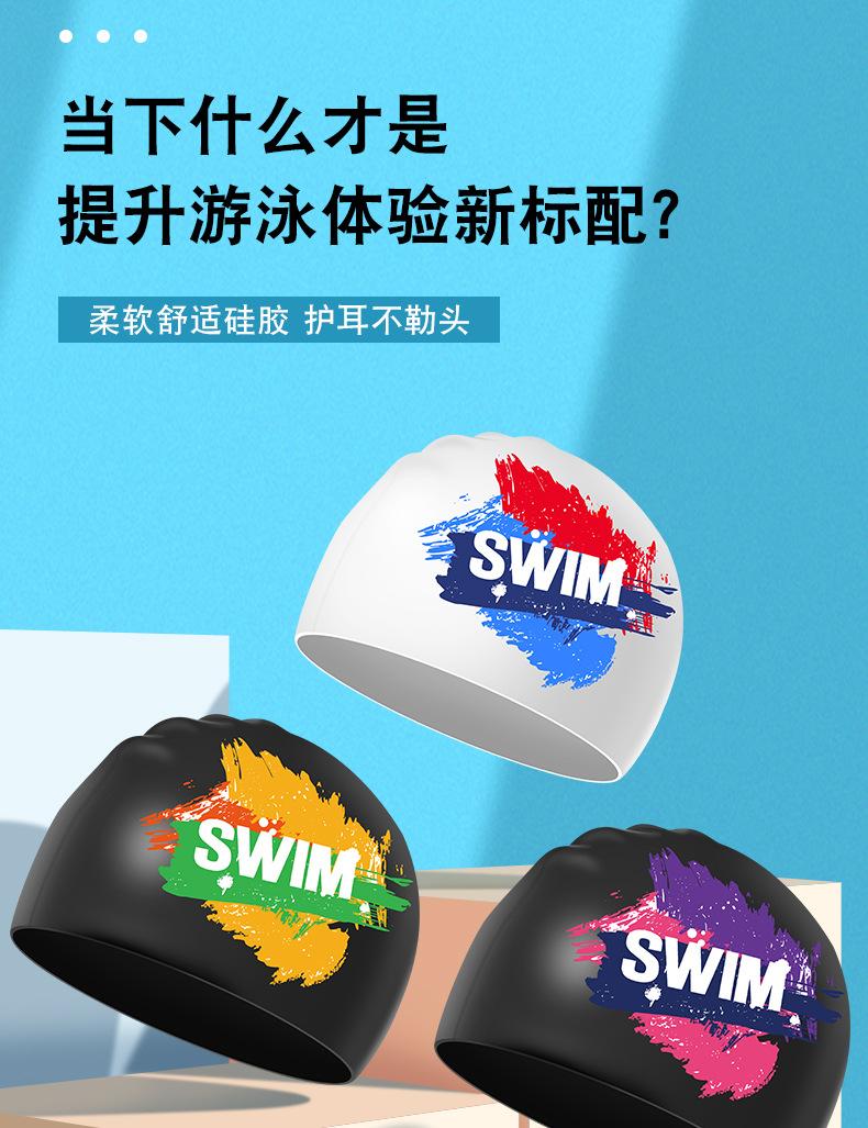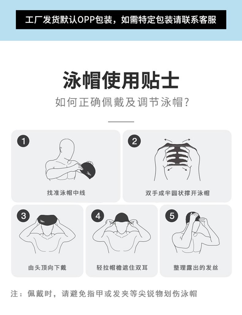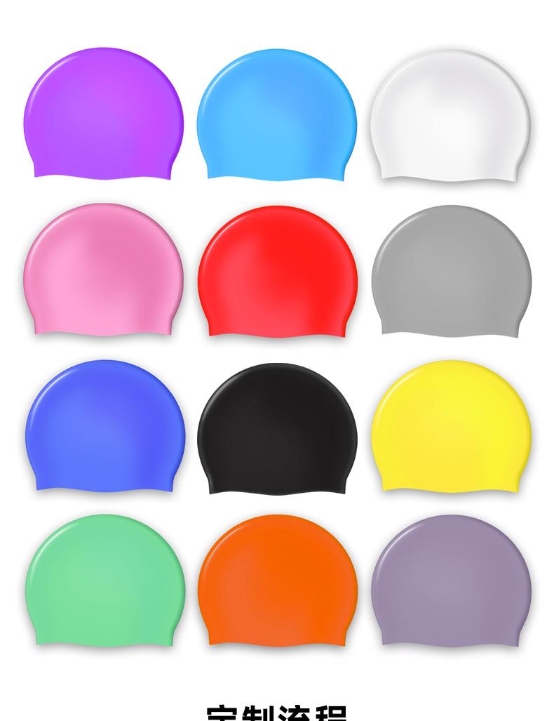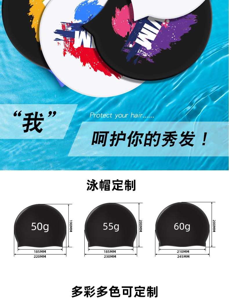 Características del producto: Gorro de natación de silicona de alta elasticidad ajustado, superimpermeable, suave y cómodo, buena elasticidad; el LOGO convencional personalizado está serigrafiado, los patrones complejos multicolores pueden ser transferidos por calor, el patrón del LOGO es claro, ¡y se puede estirar a voluntad sin grietas ni decoloración!