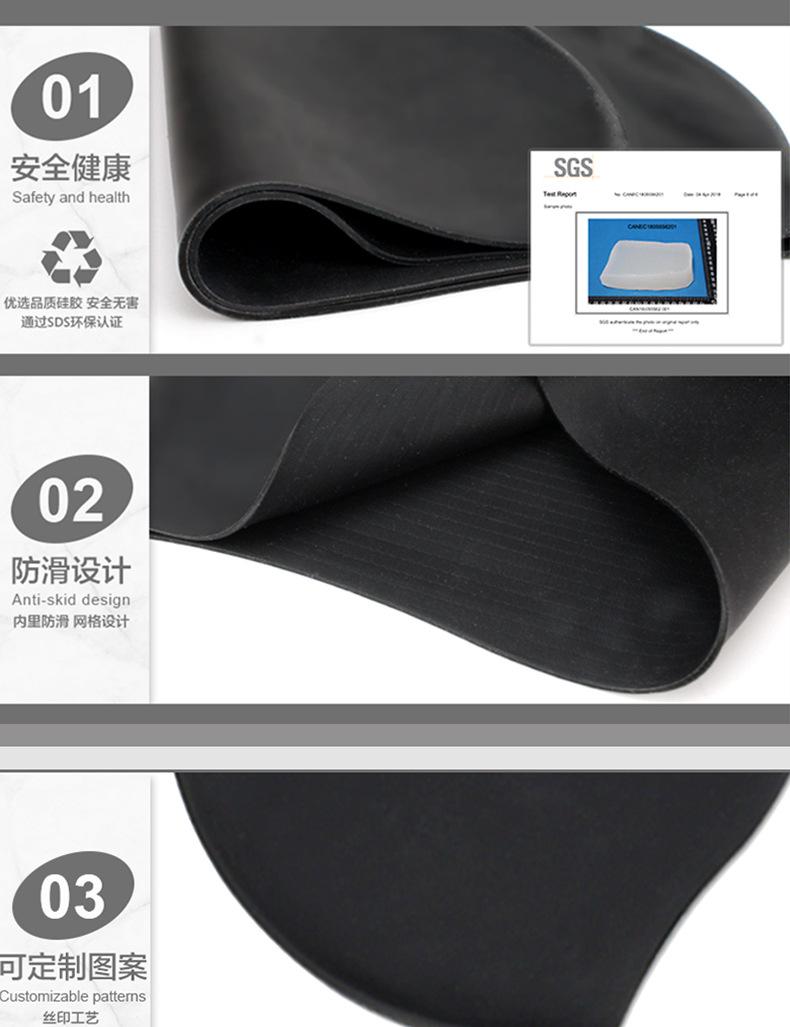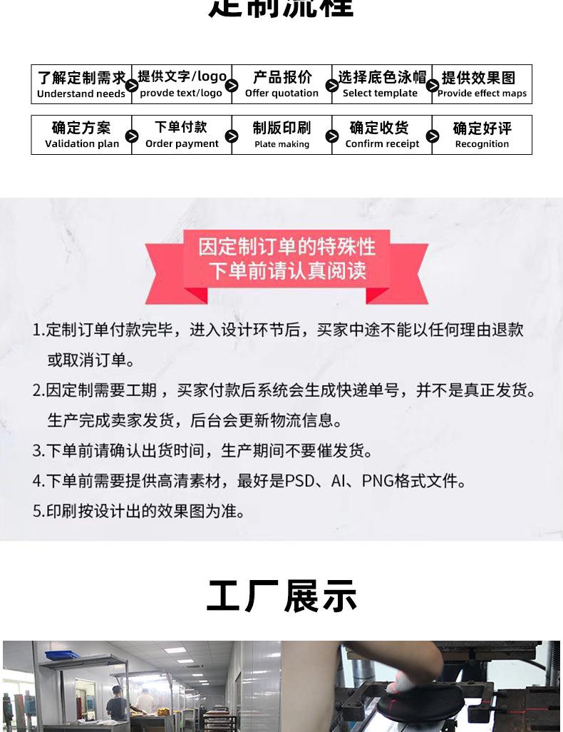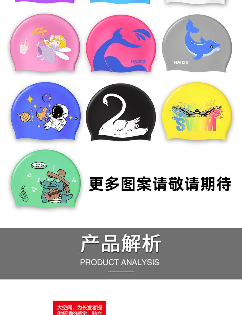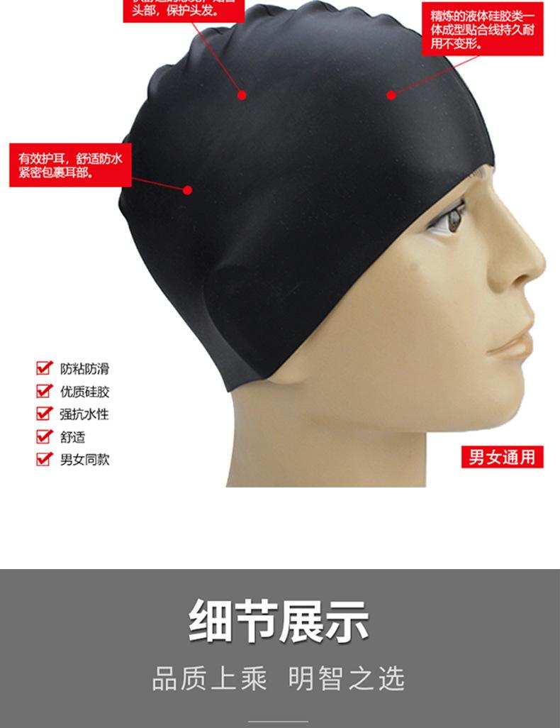 Características del producto: Gorro de natación de silicona de alta elasticidad ajustado, superimpermeable, suave y cómodo, buena elasticidad; el LOGO convencional personalizado está serigrafiado, los patrones complejos multicolores pueden ser transferidos por calor, el patrón del LOGO es claro, ¡y se puede estirar a voluntad sin grietas ni decoloración!