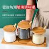 Tarro de vidrio redondo sellado al por mayor, tarro de almacenamiento para el hogar con cuchara de madera, botella de condimento, tarro de almacenamiento de alimentos de cocina adecuado