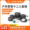Juego de ollas para exteriores Bulin, utensilios de cocina para acampar, hervidor, estufa de cartas, equipo portátil, vajilla de campo, olla para acampar