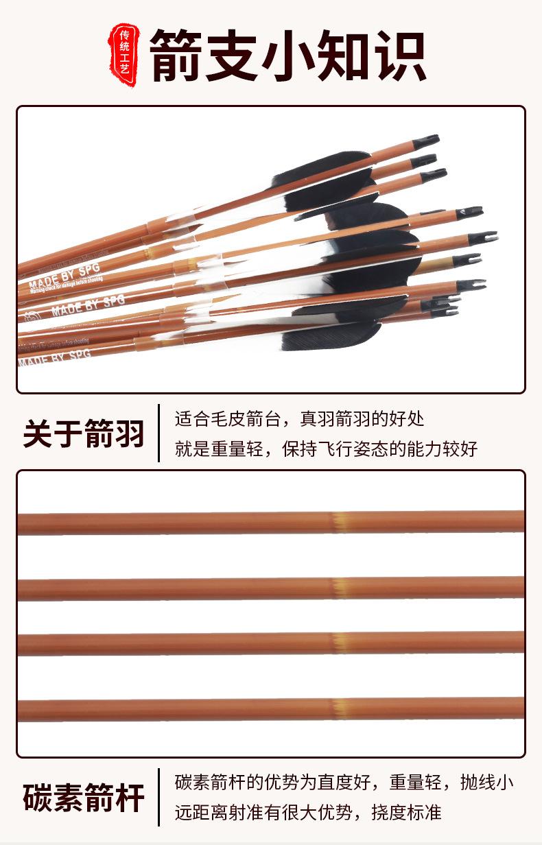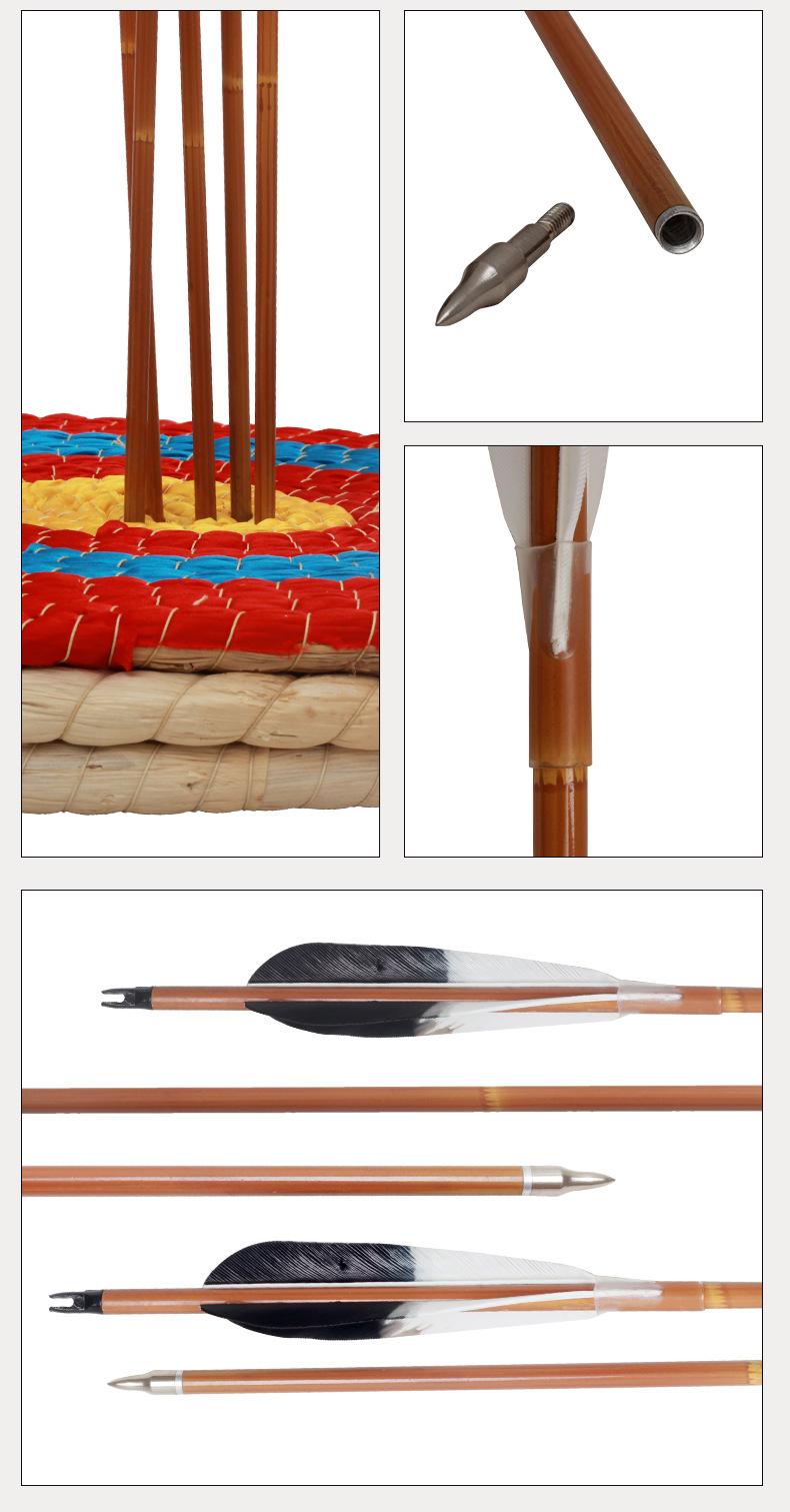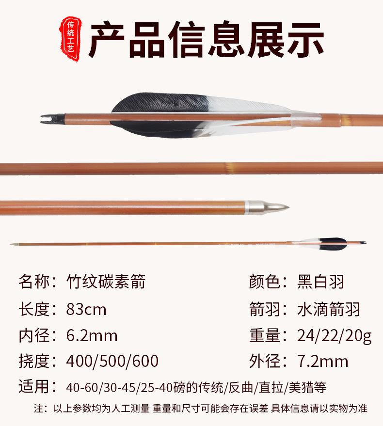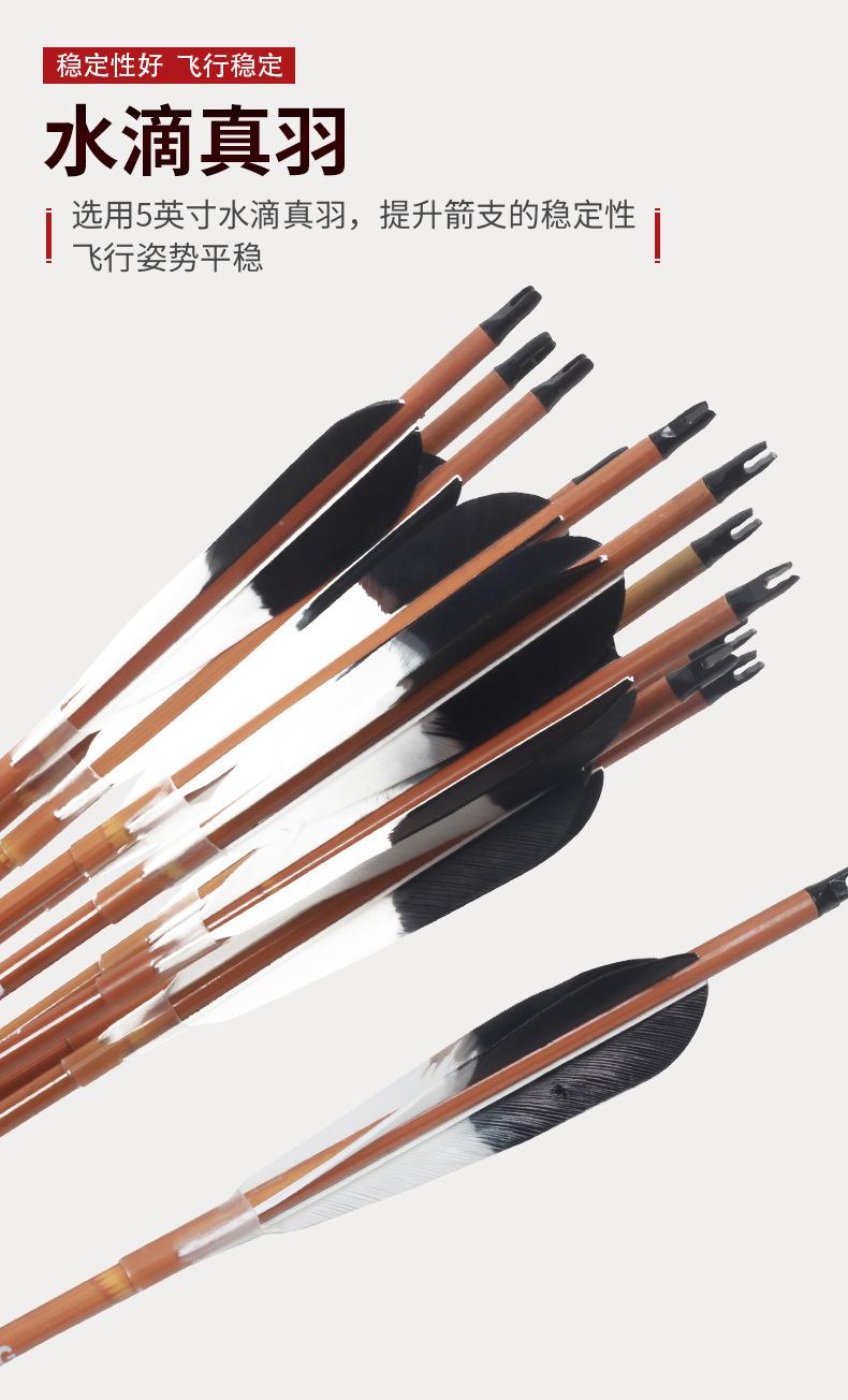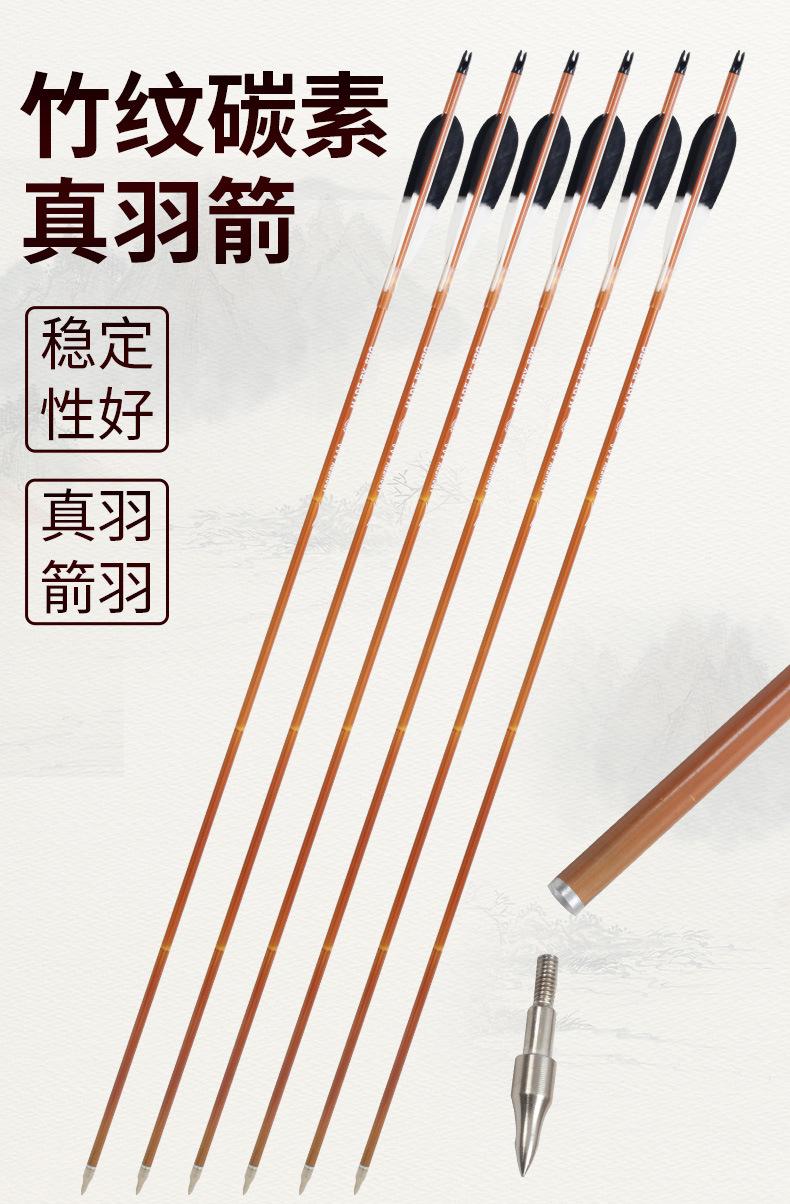 Flecha de carbono puro con grano de bambú y plumas auténticas, ideal para caza, arco recurvo tradicional, flecha universal, multideflexión, opcional, venta al por mayor
