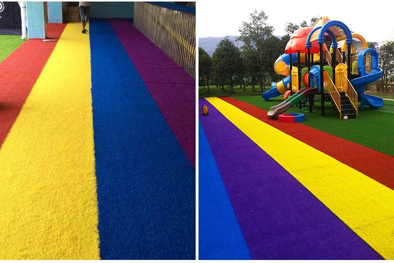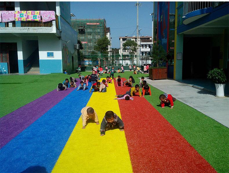Qingzhou Césped Artificial Jardín de Niños Césped Arcoíris Respetuoso con el Medio Ambiente Retardante de Llama Césped para Pista Suministro Directo de Fabricante de Césped Artificial Exterior