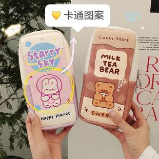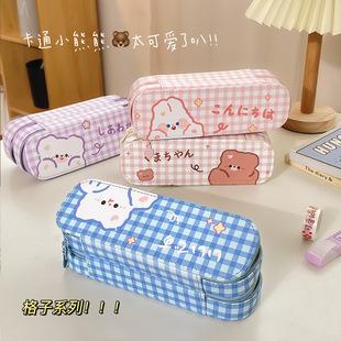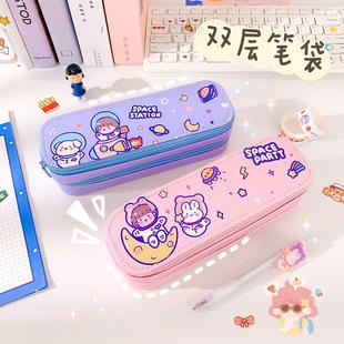 Estuche de lápices de doble capa estilo caricatura ins papelería para estudiantes caja de lápices almacenamiento gran capacidad bolsa de lápices papelería creativa para niños