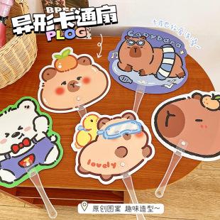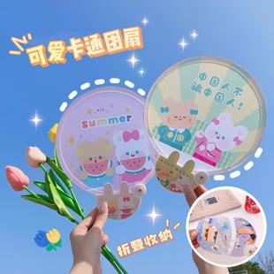 Ventas Directas de Fábrica Abanico Redondo Plegable de Verano de Dibujos Animados Portátil para Exterior Superficie de Tela Abanico Redondo de Bolsillo con Mango Abanico Plegable de Mano