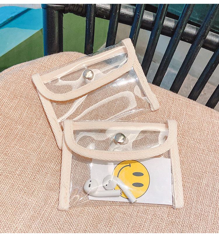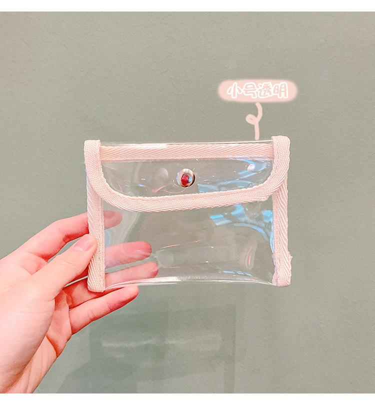 Bonita bolsa de almacenamiento con broche a presión, monedero portátil de tamaño pequeño, bolsa de almacenamiento simple para mujer, bolsa de tarjeta de PVC transparente, bolsa de identificación