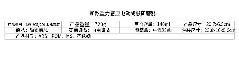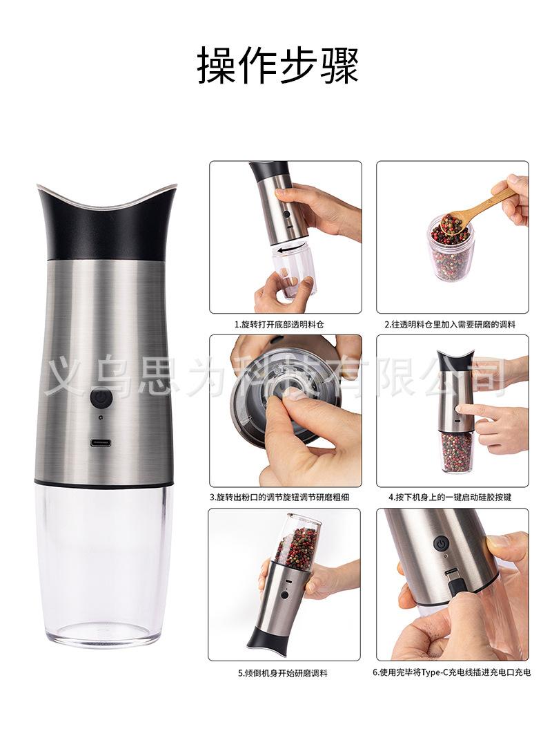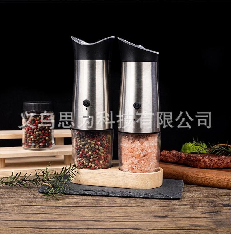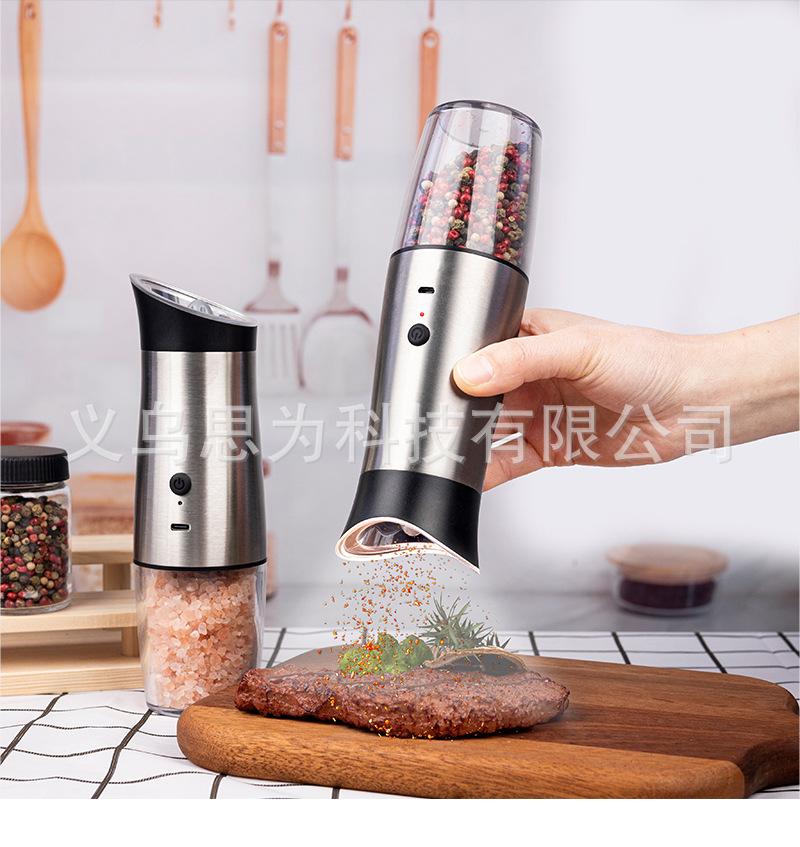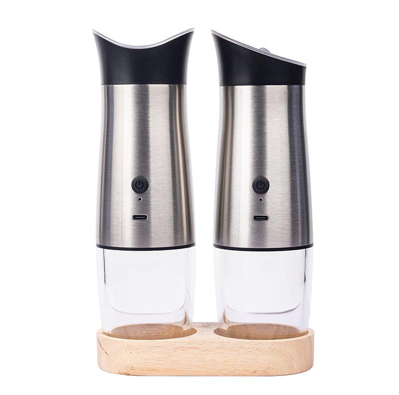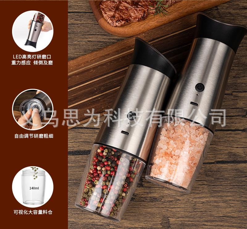 Molinillo de Pimienta Eléctrico con Sensor de Gravedad Acero Inoxidable Carga USB Batería Grande Pimienta Sal Marina Molinillo Juego de Combinación
