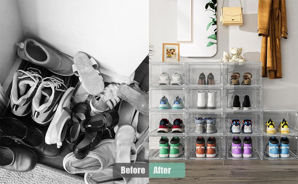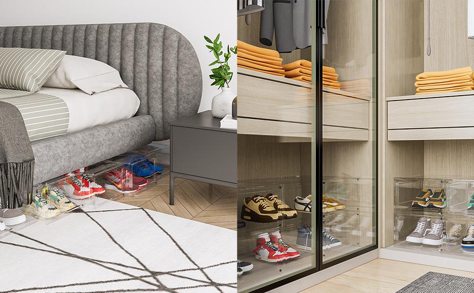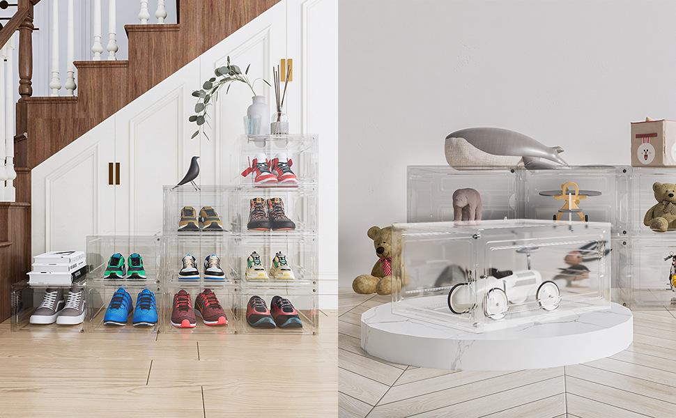 Caja de zapatos gruesa de polipropileno, totalmente transparente, de plástico, con cajón abatible, a prueba de polvo y humedad, plegable, de alta gama.