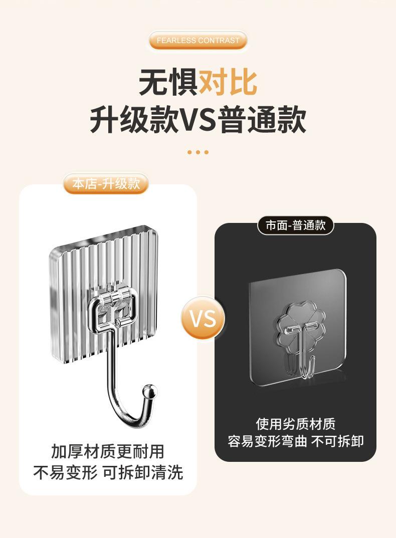 Gancho adhesivo fuerte para colgar en la pared, transparente, sin costuras, para el hogar, cocina, pasta de pared