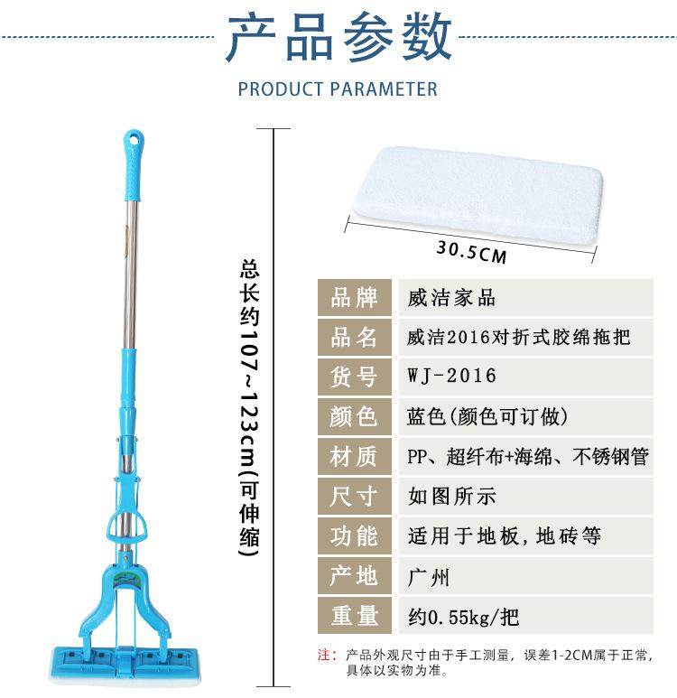 Trapeador telescópico de acero inoxidable de fábrica Weijie con esponja absorbente, para uso doméstico, plegable, para lavado a mano, cabezal de algodón de microfibra, Venta al por mayor
