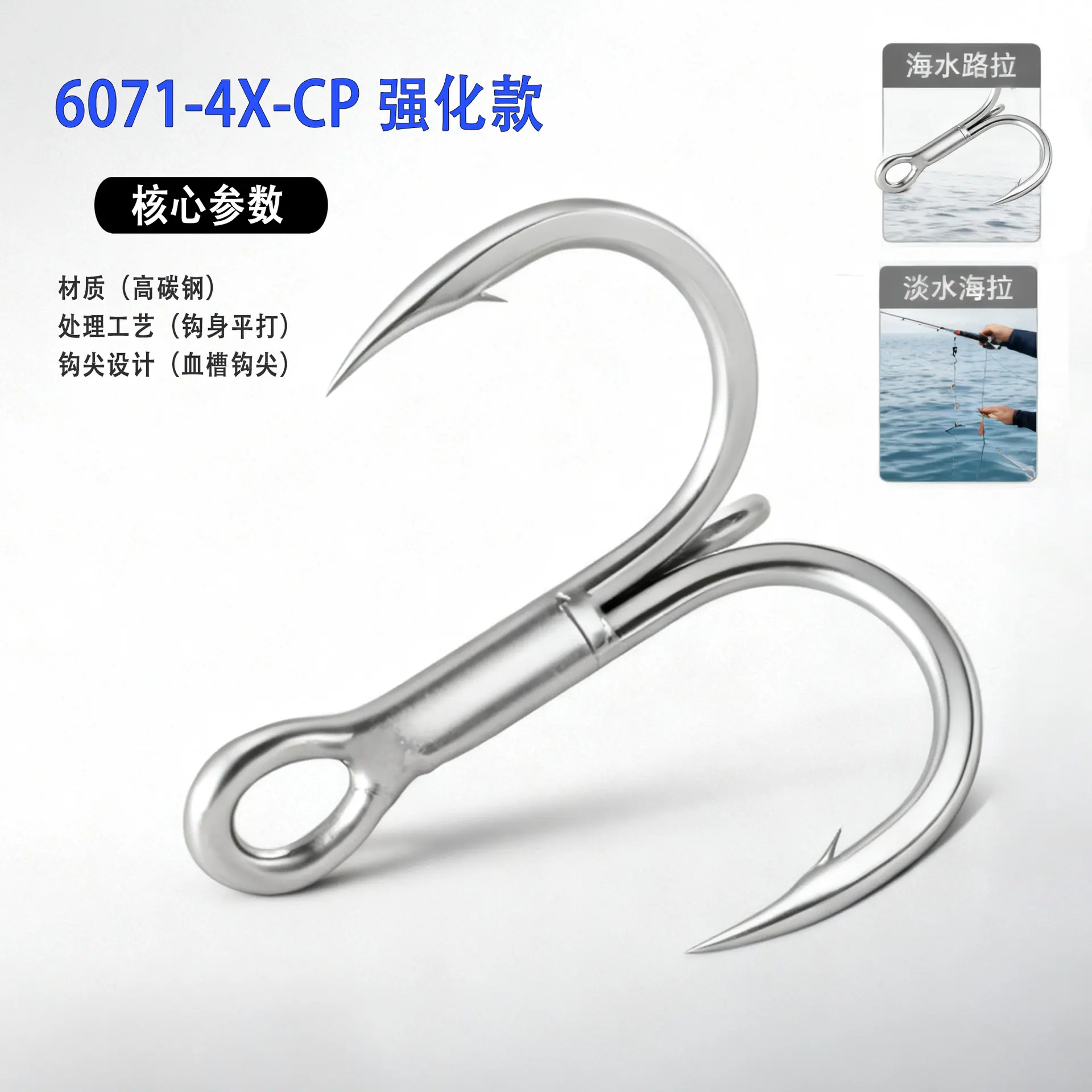 Anzuelo de pesca Luya con punta reforzada de canal de sangre, tres anzuelos, correa de acero con alto contenido de carbono, ancla con púas, pesca en el mar, pesca en agua dulce, 6071-4x