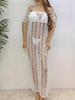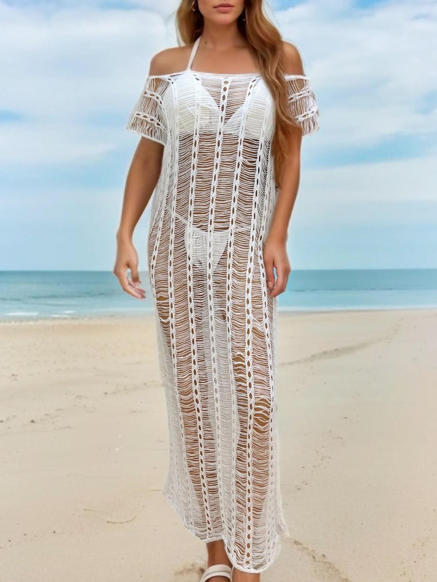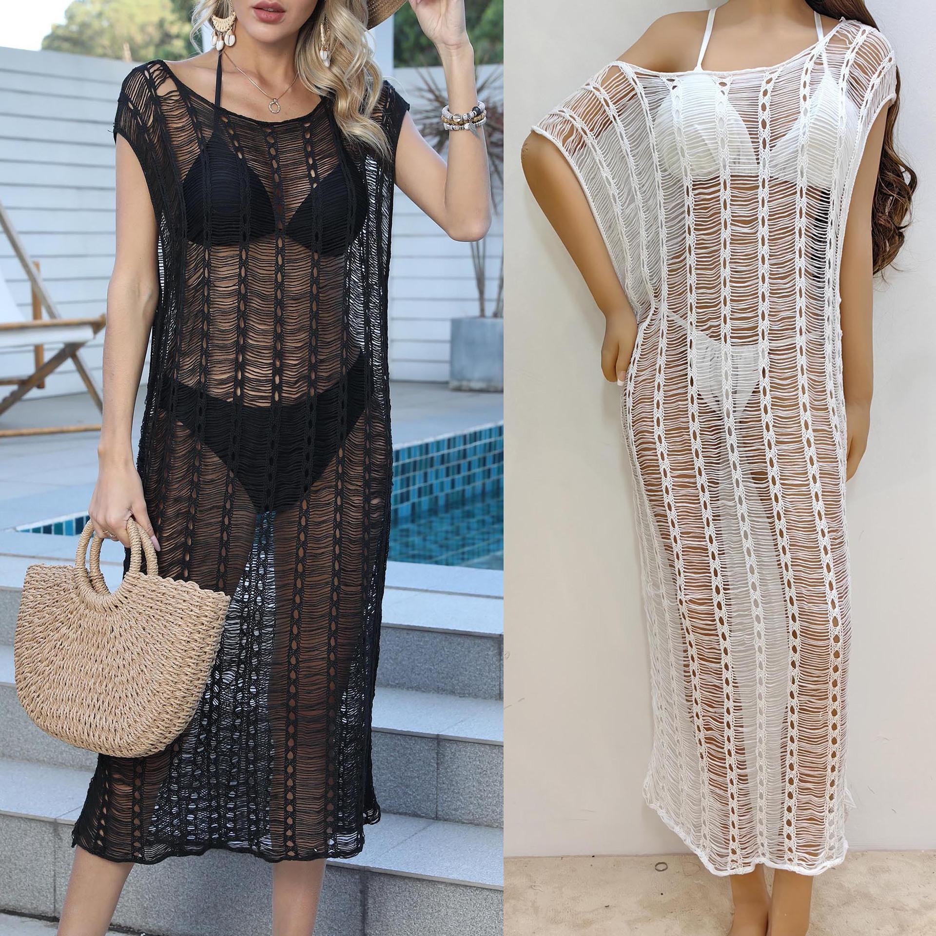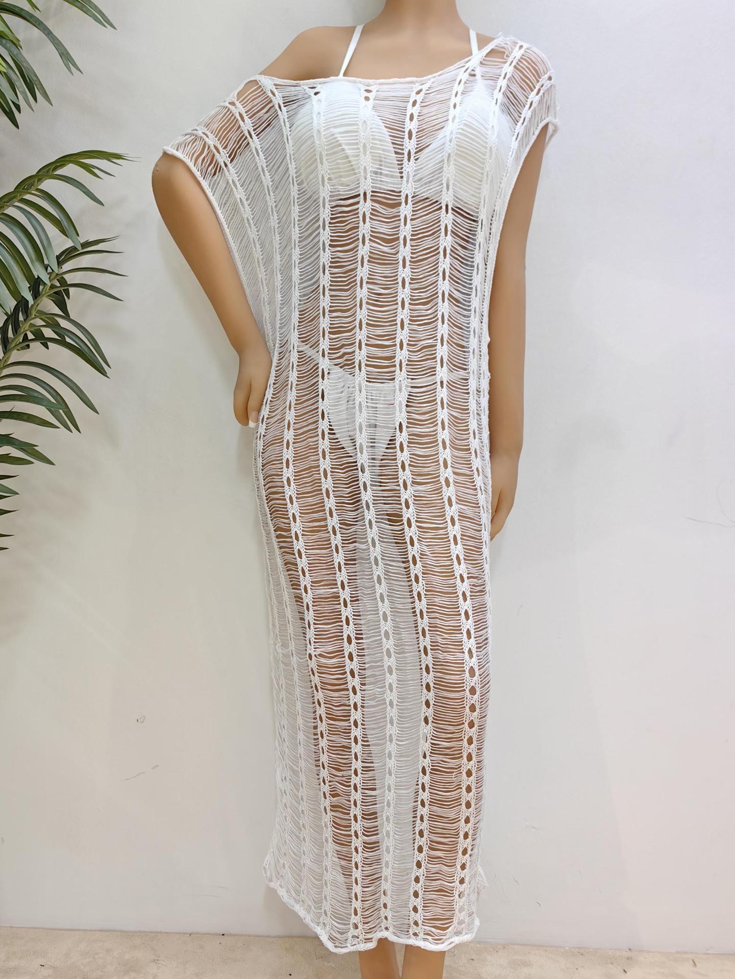 Vestido de vacaciones de playa camisa tejida hueca transfronteriza europea y americana blusa bikini con hombros descubiertos Z971