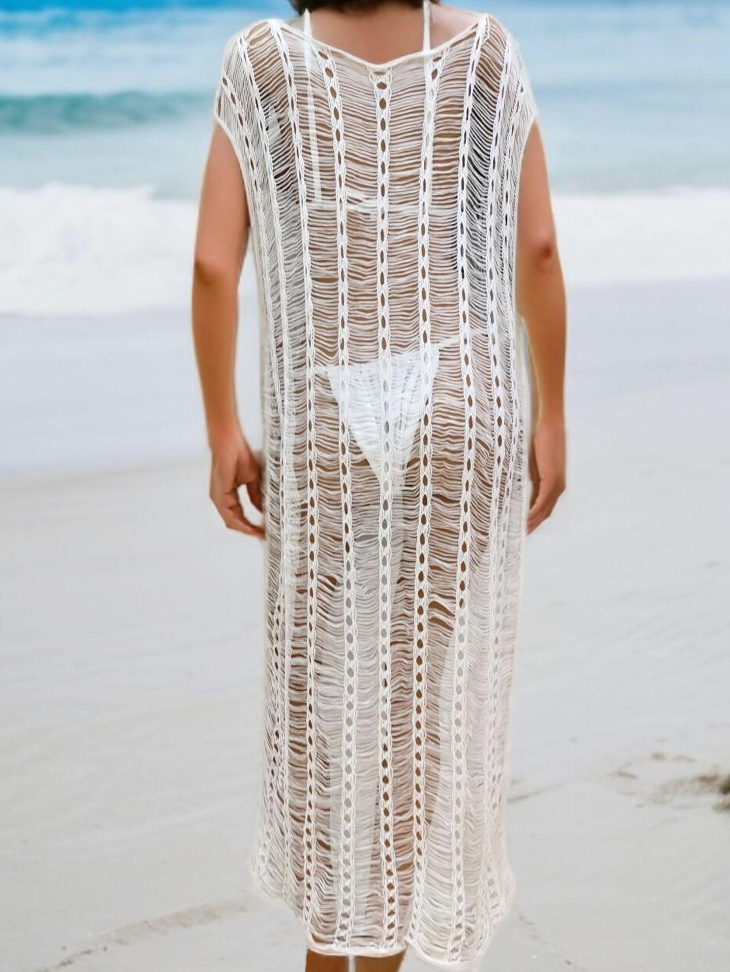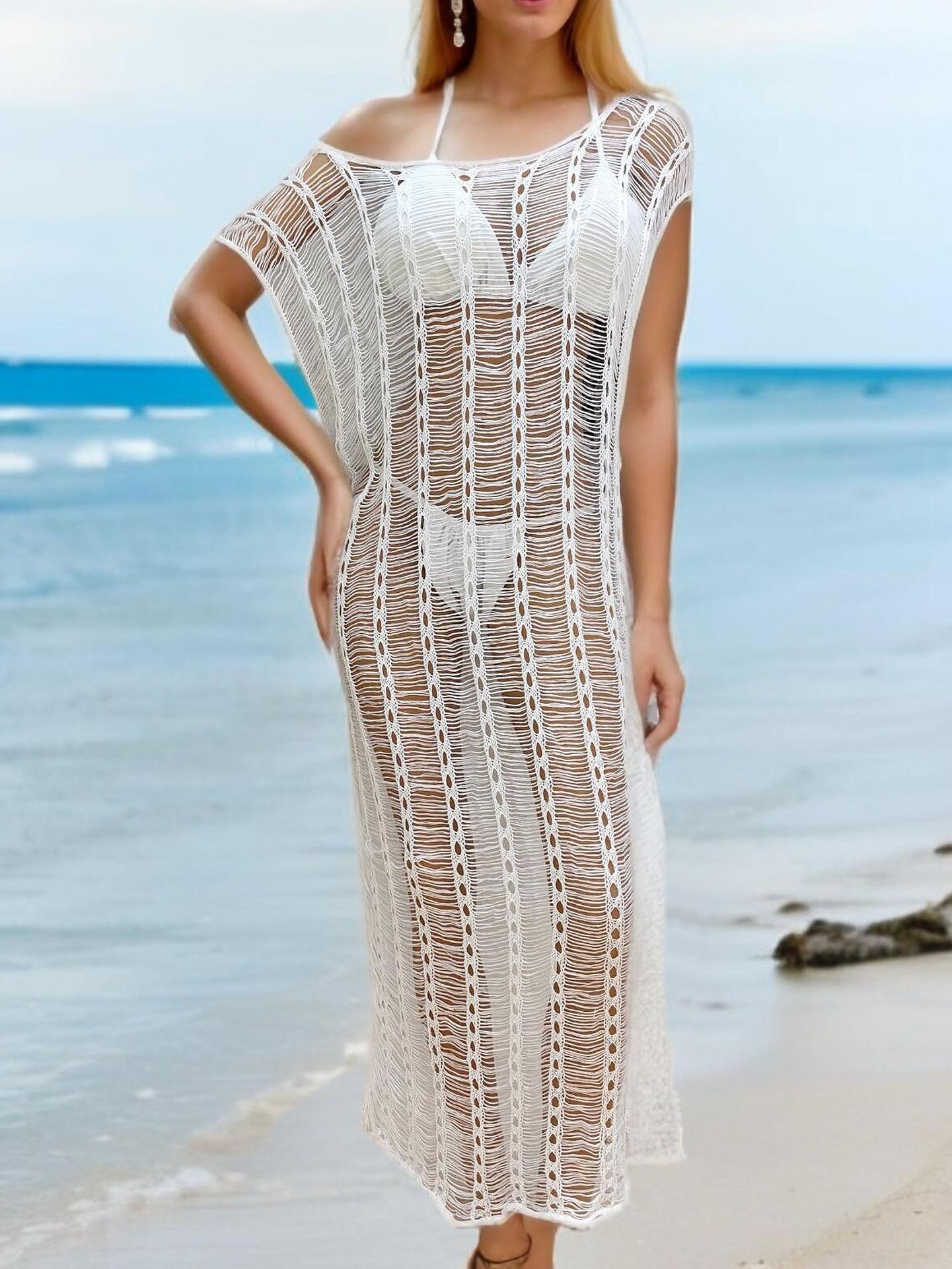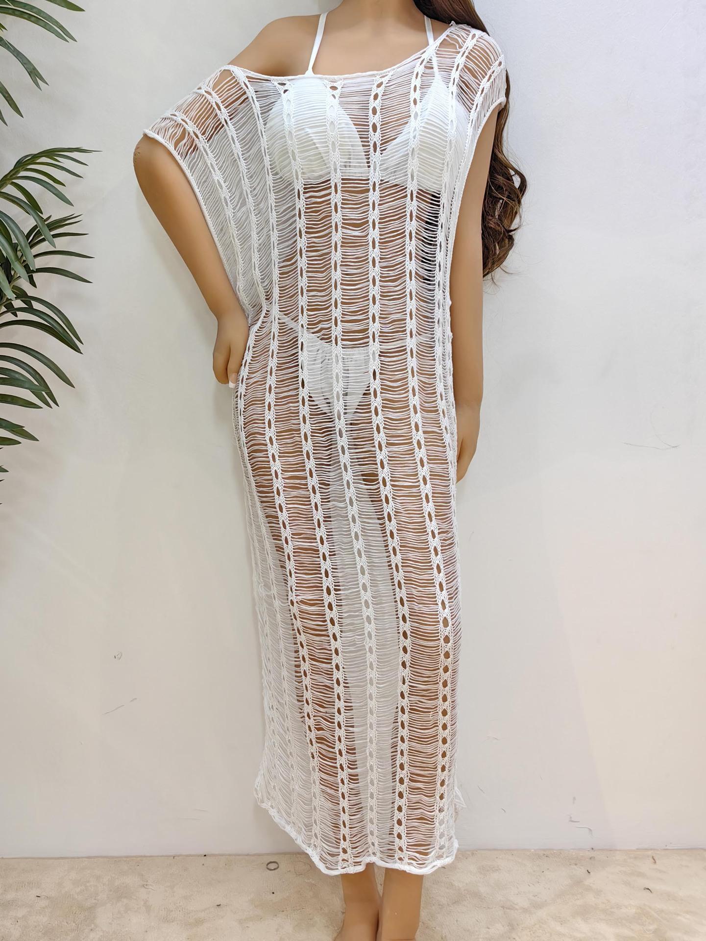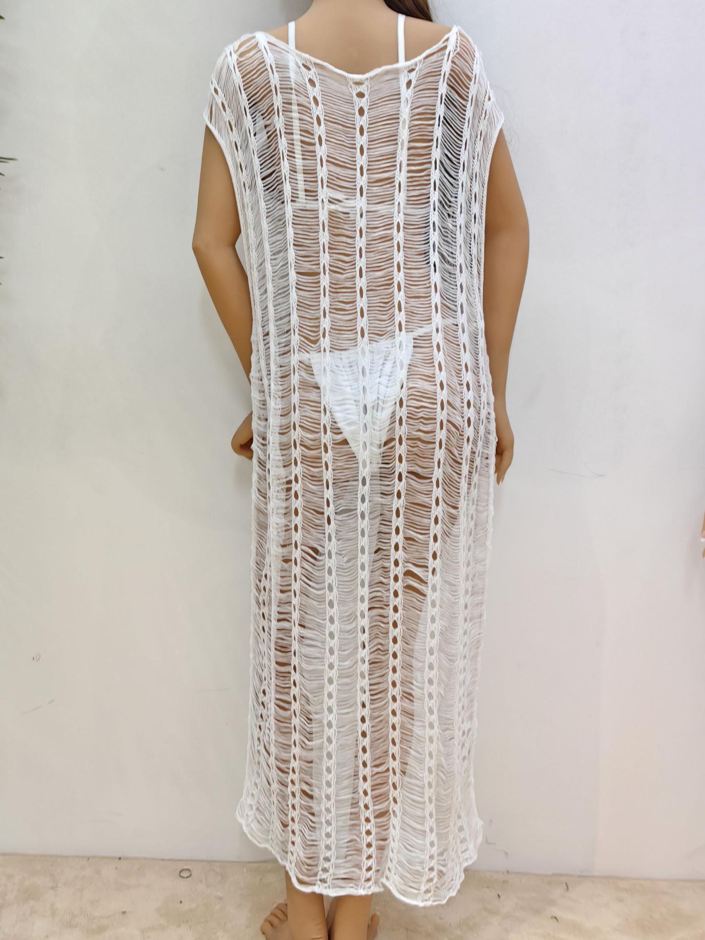 Vestido de vacaciones de playa camisa tejida hueca transfronteriza europea y americana blusa bikini con hombros descubiertos Z971