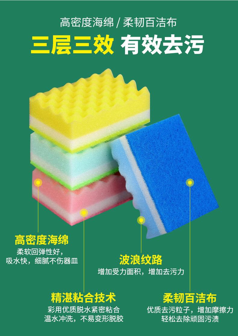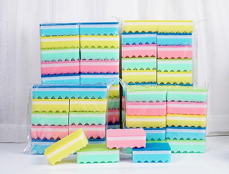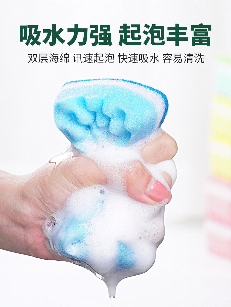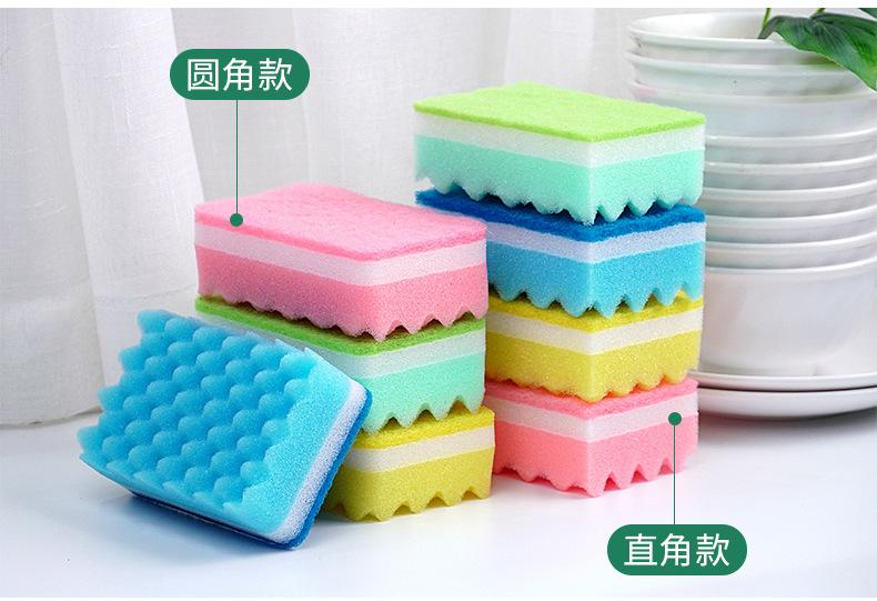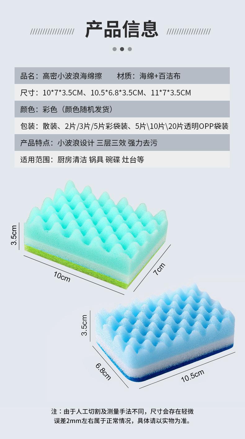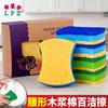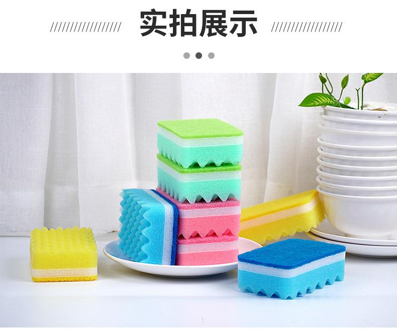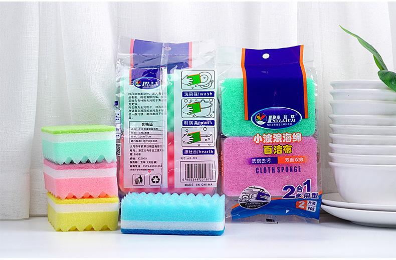 Color limpieza pulpa de madera algodón onda pequeña esponja estropajo cocina lavavajillas olla bloque de trapo tres capas tres efectos
