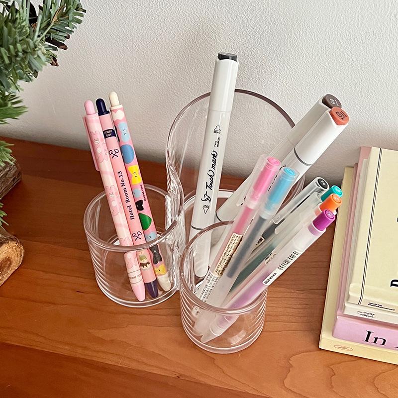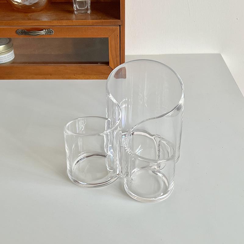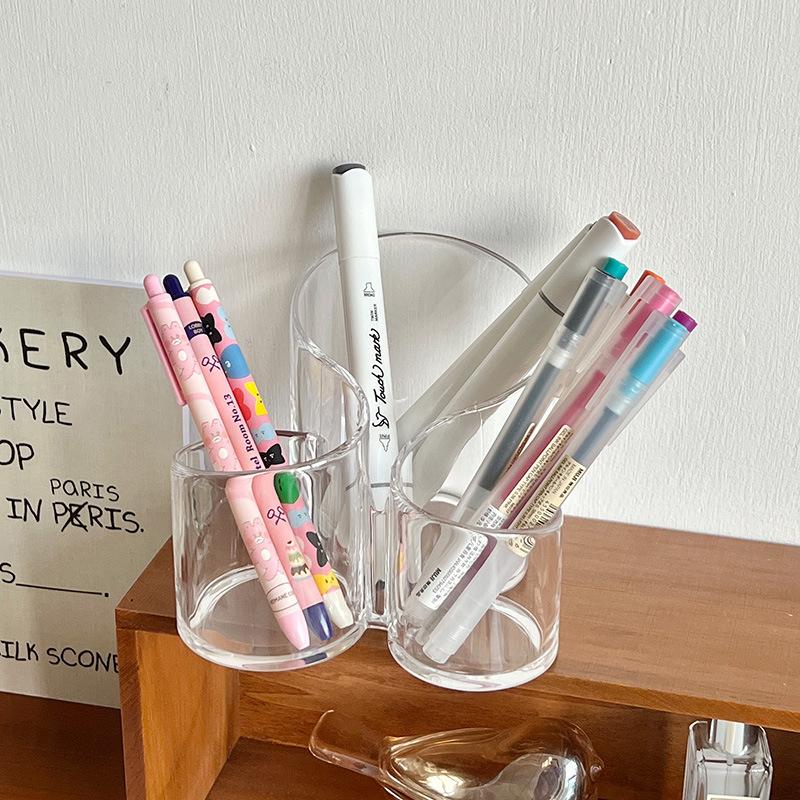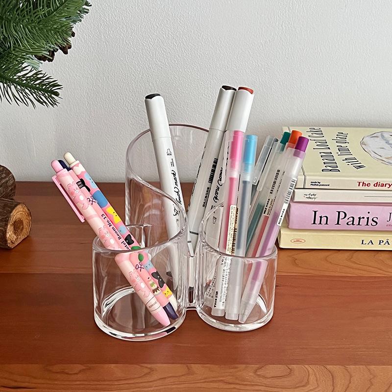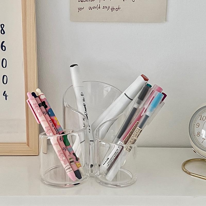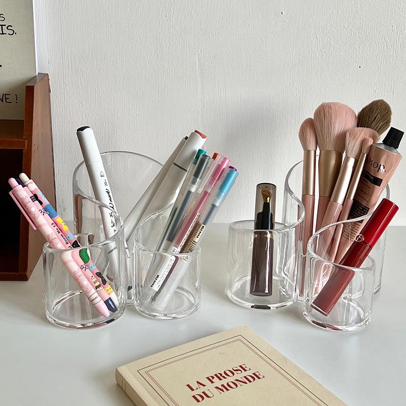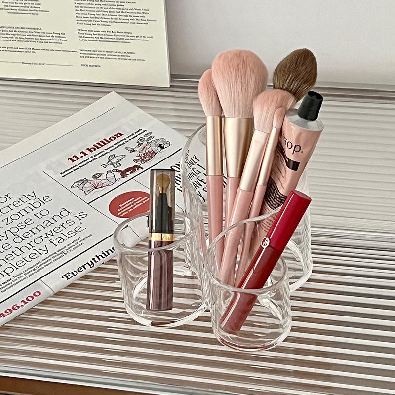 Cubo de Almacenamiento de Brochas de Maquillaje Acrílico Transparente Casual Ins Soporte para Bolígrafos de Estudiante Caja de Almacenamiento de Lápices Labiales para Cosméticos de Escritorio