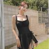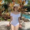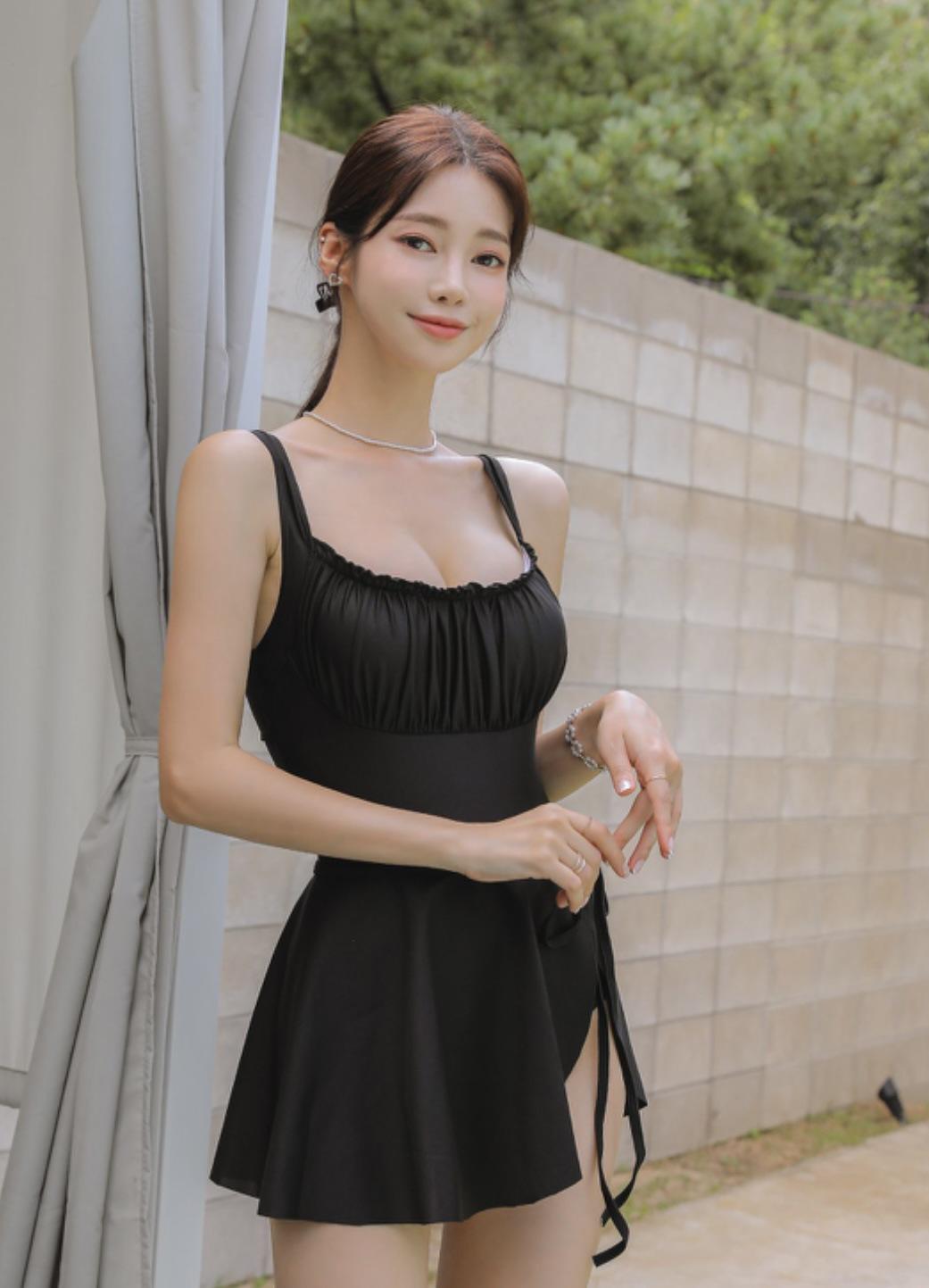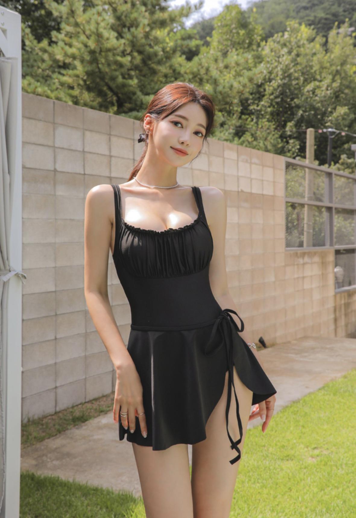 Traje de baño de una pieza sin espalda para mujer, estilo coreano, con tirantes finos y parte superior de tubo negra, para estudiantes, para aguas termales