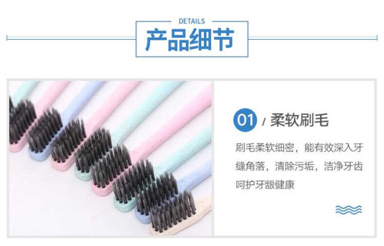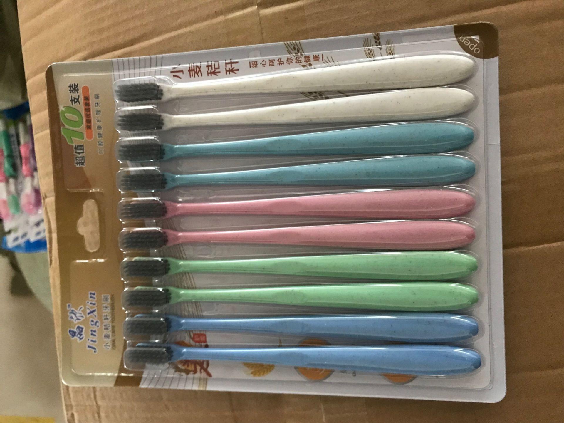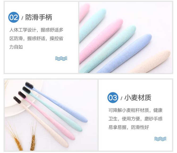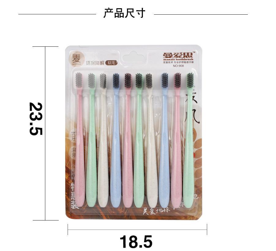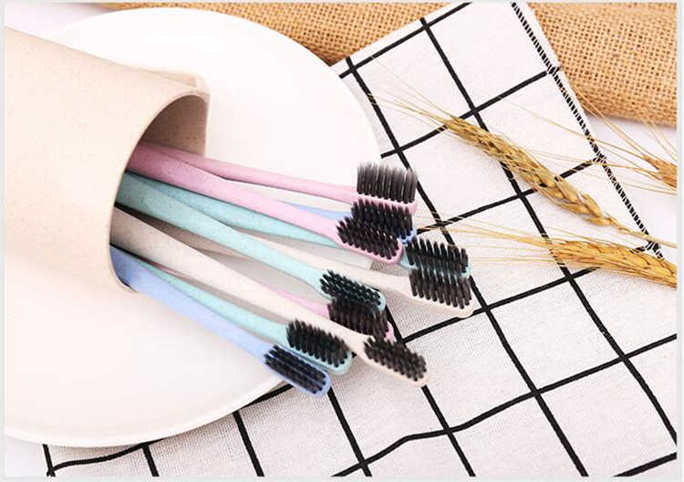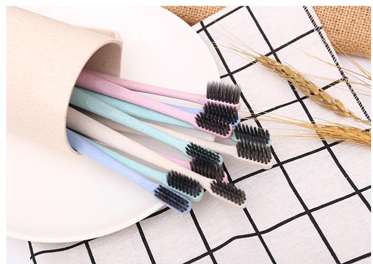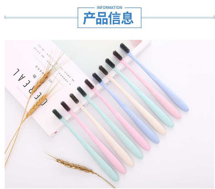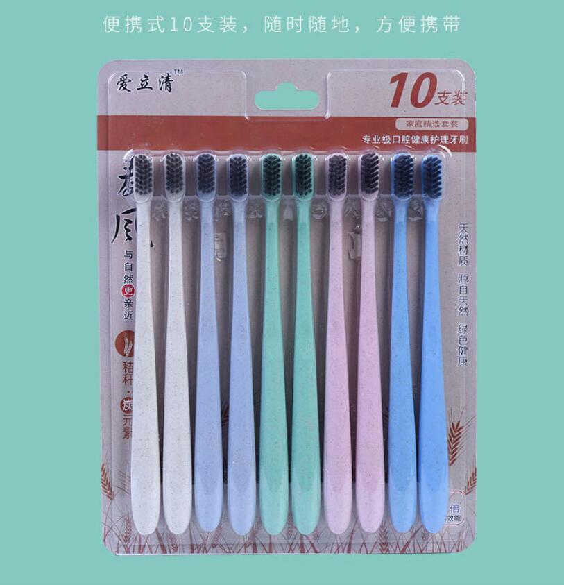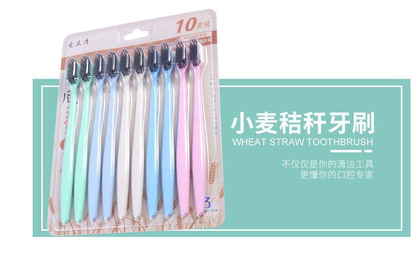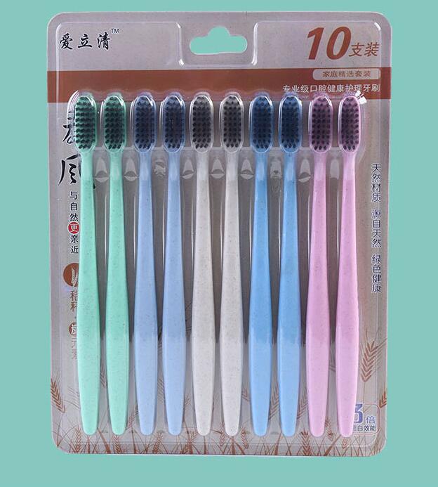 Paquete de 10 cepillos de dientes de paja de trigo verde para adultos, cepillos de dientes portátiles de viaje, cepillos de dientes de pelo suave, venta al por mayor