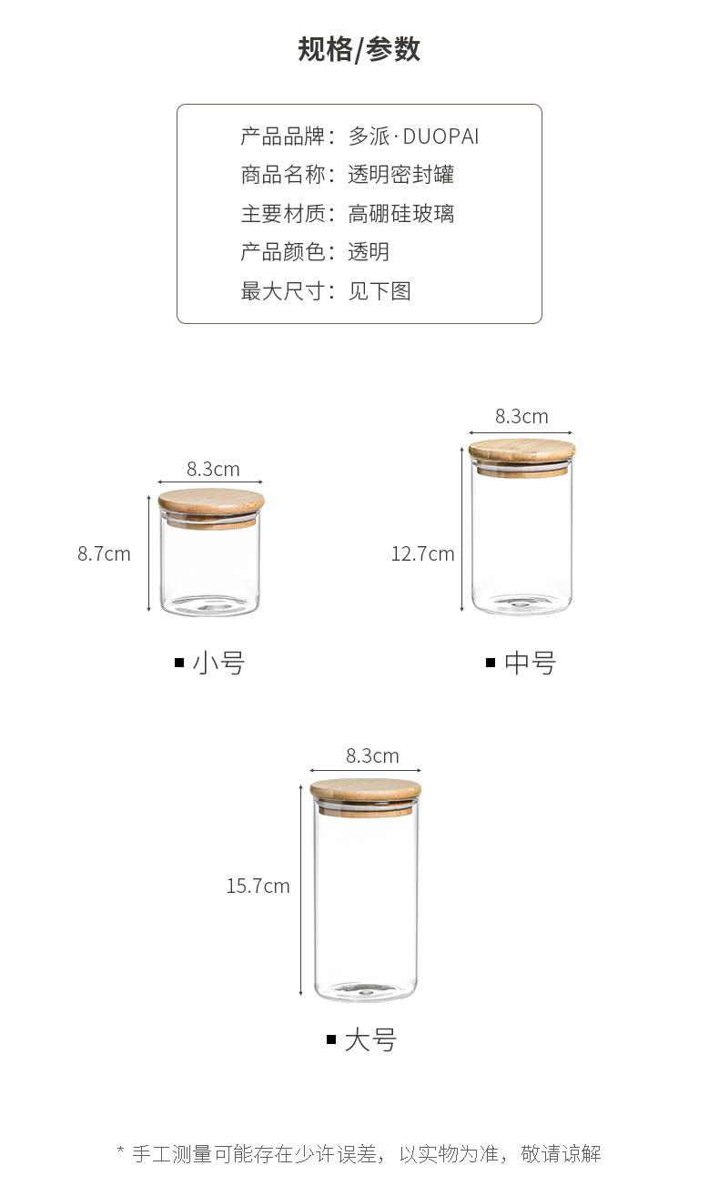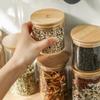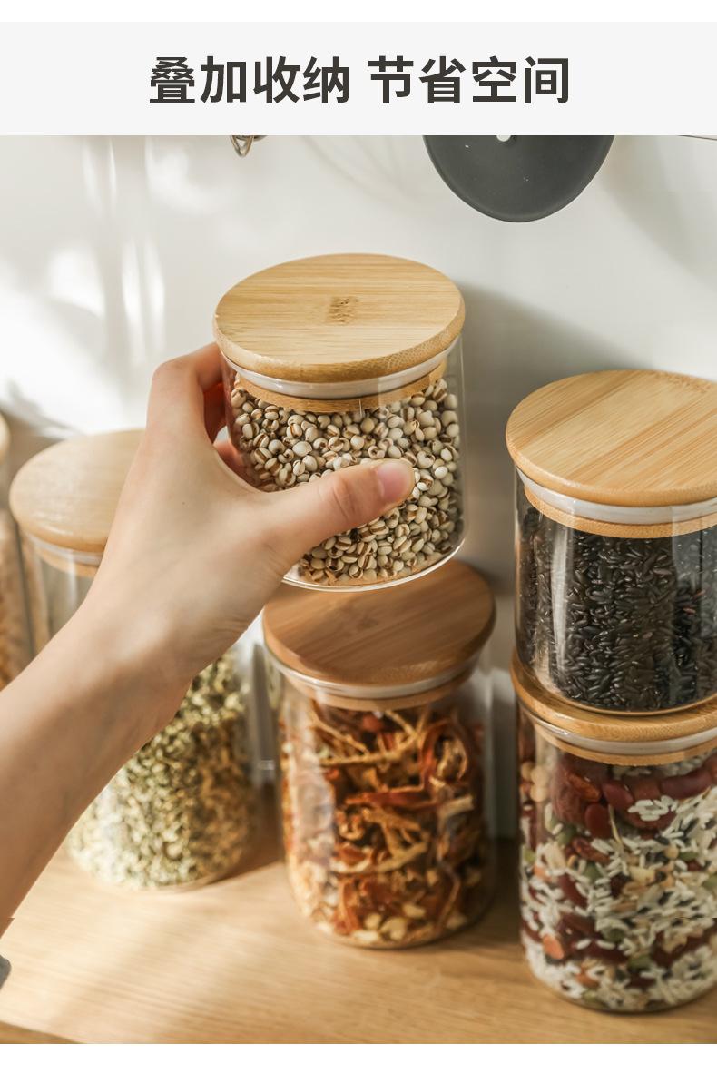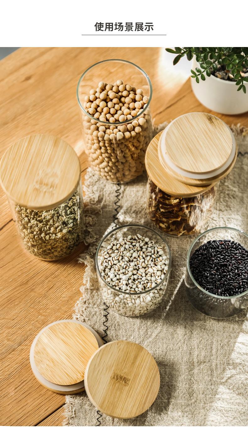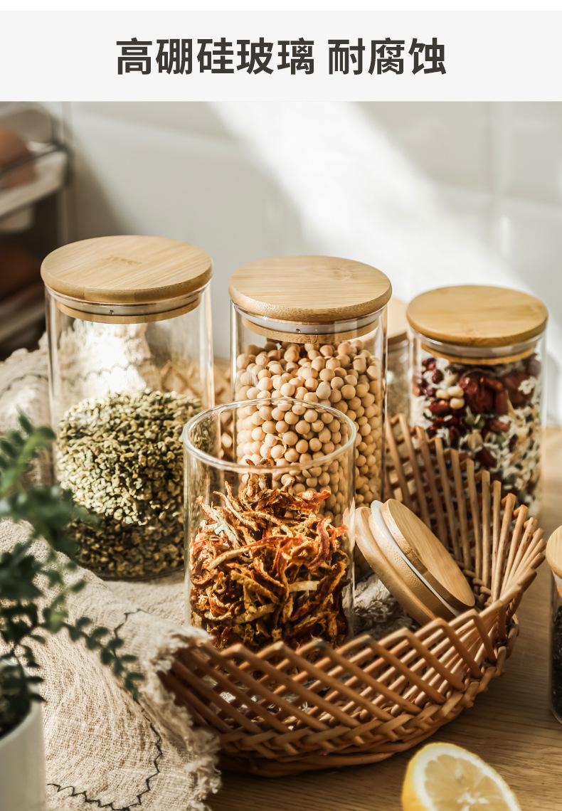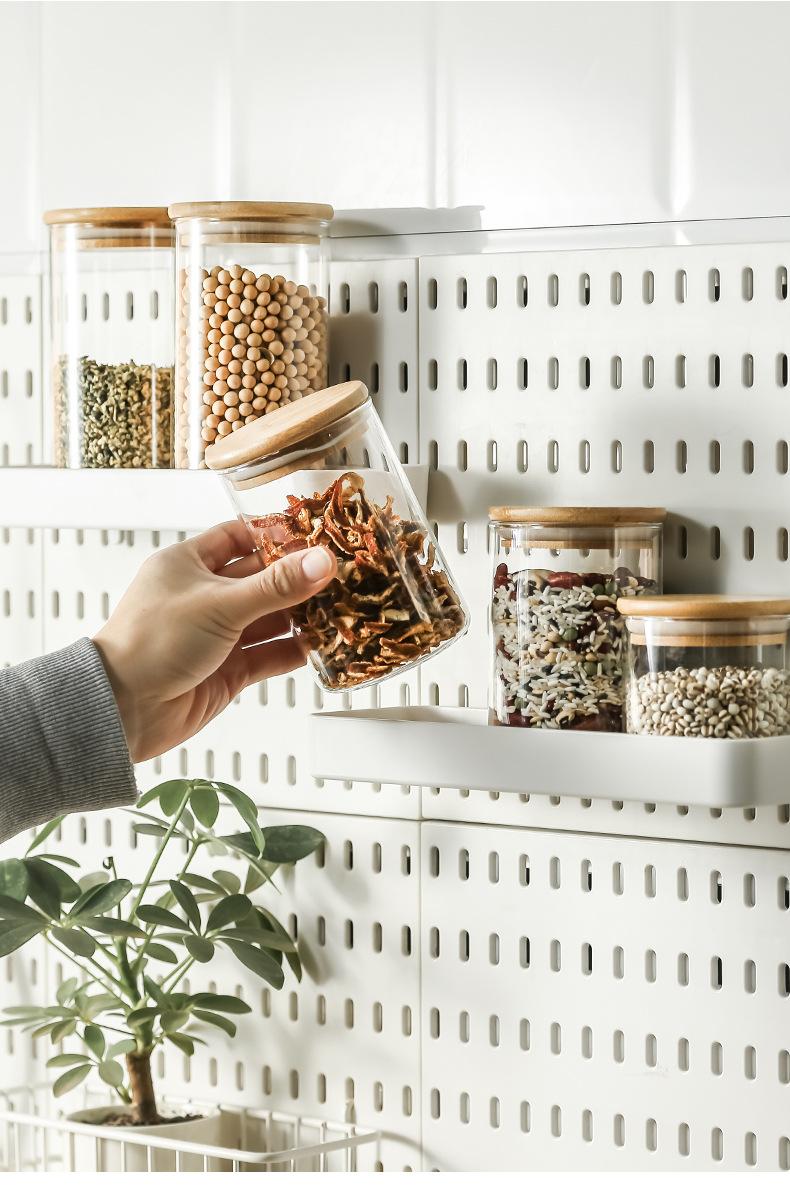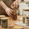 Frasco de vidrio sellado con tapa, apto para uso alimentario, para almacenar granos, té y frutos secos.