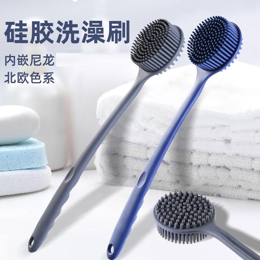 Cepillo de baño de silicona con mango largo, artefacto para frotar la espalda, cepillo para frotar la espalda, cepillo para frotar la espalda de pelo suave, cepillo para baño, toalla para frotar