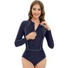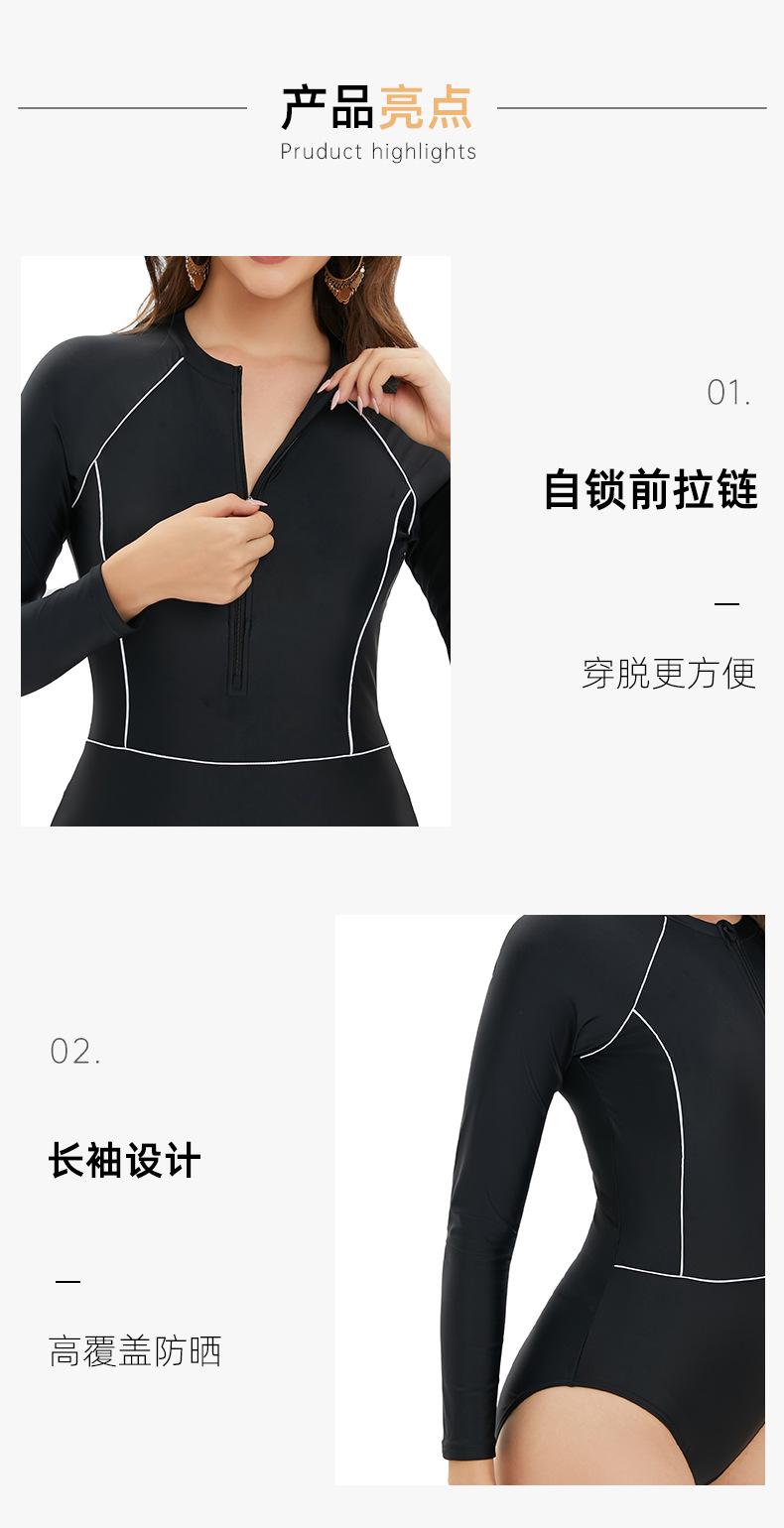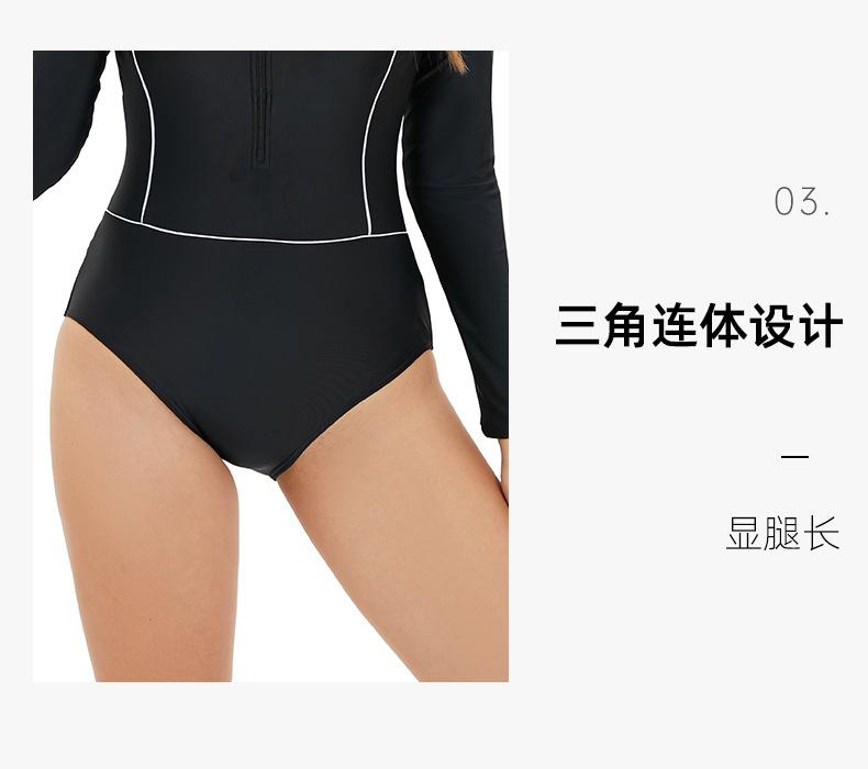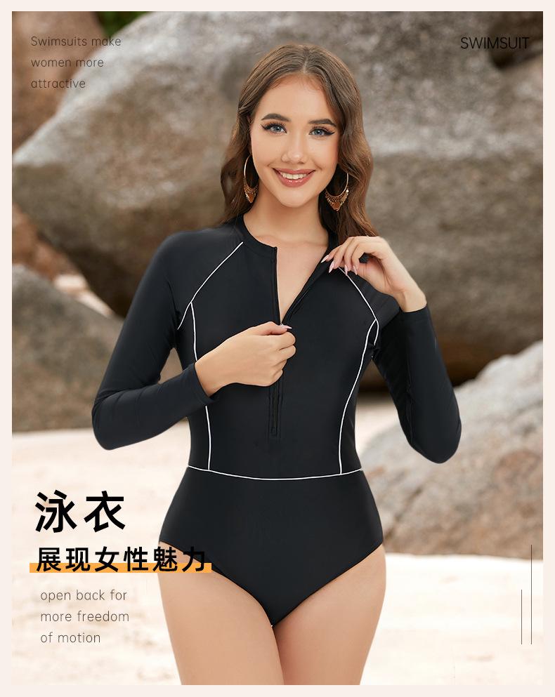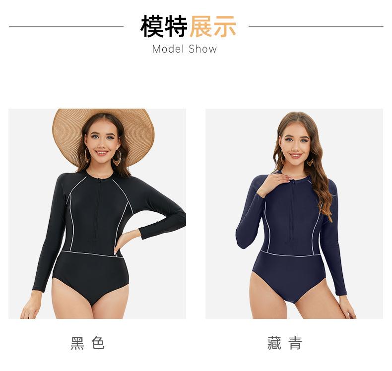 Nuevo Traje de Surf de Manga Larga en Stock con Cremallera, Traje de Baño de una Pieza con Diseño de Rayas Elegantes, Traje de Buceo Conservador