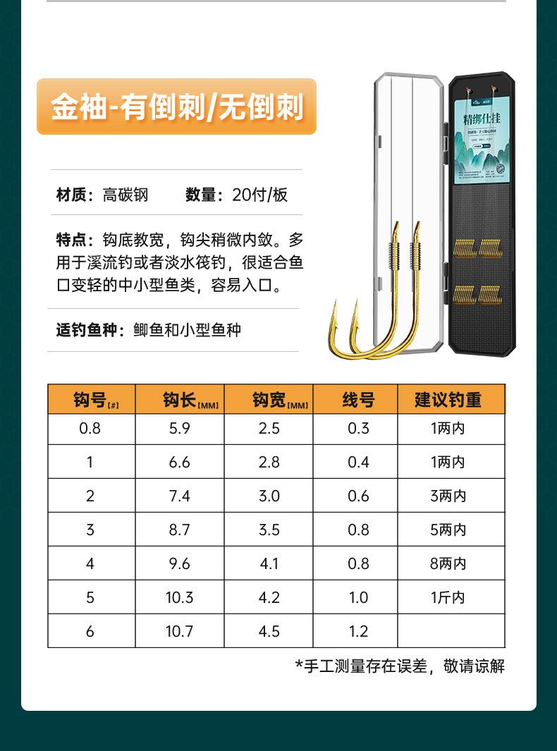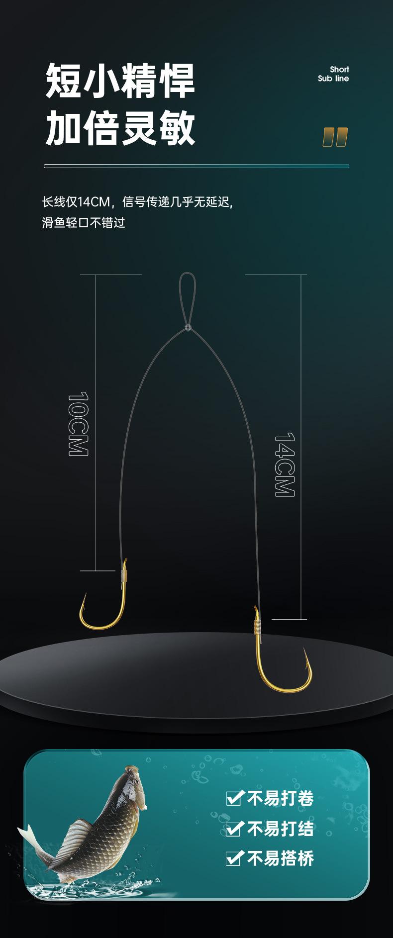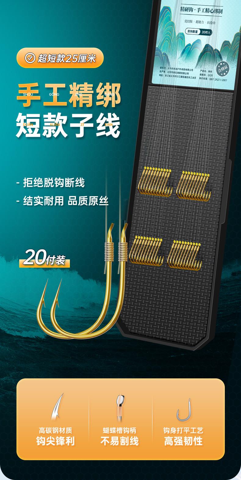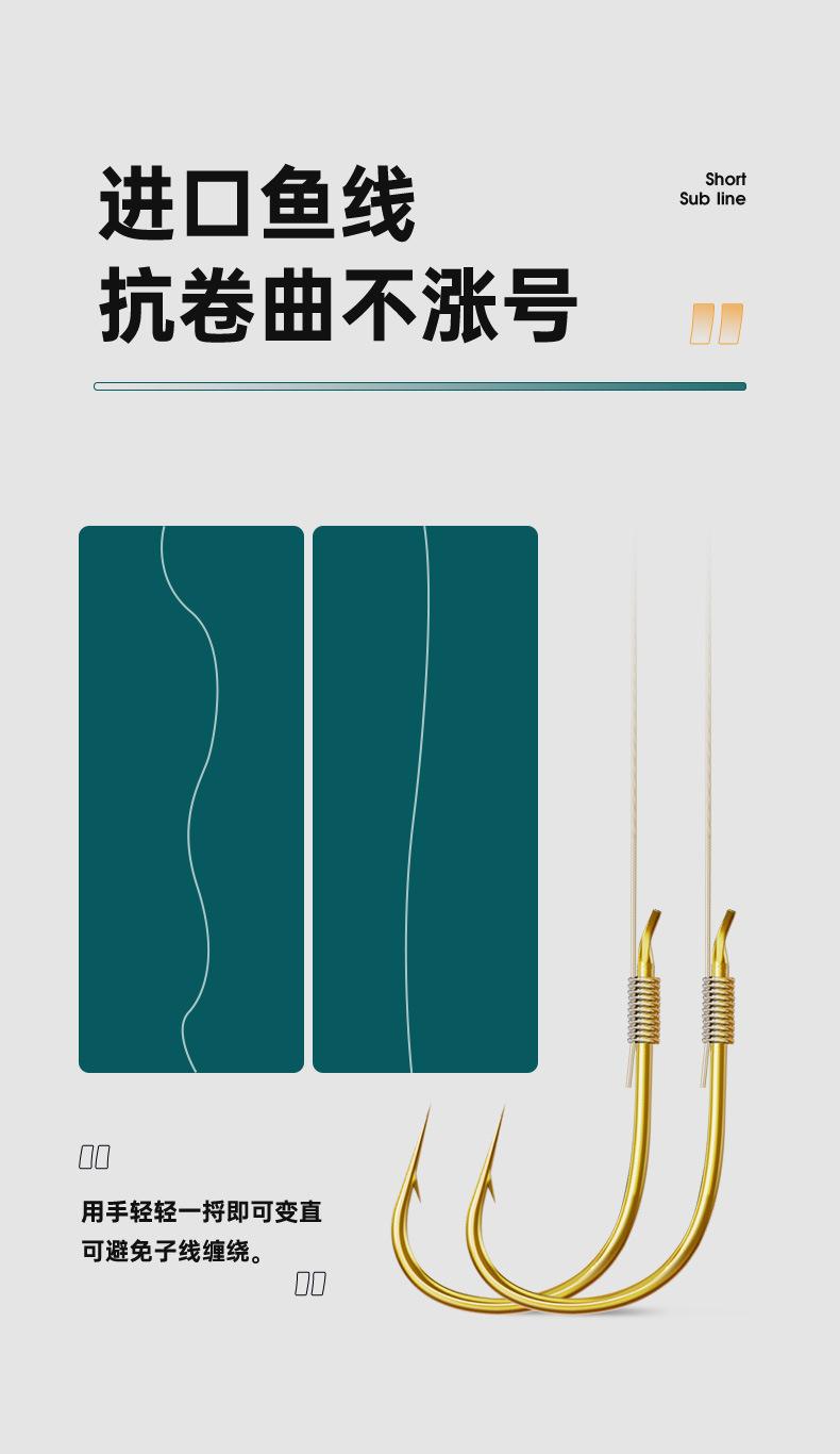 Anzuelo de pesca con hilo corto atado, anzuelo doble, producto terminado, traje de pesca, anzuelo de manga dorada Golden Sea Xi, equipo de pesca con manga dorada, anzuelo de carpa para pesca salvaje