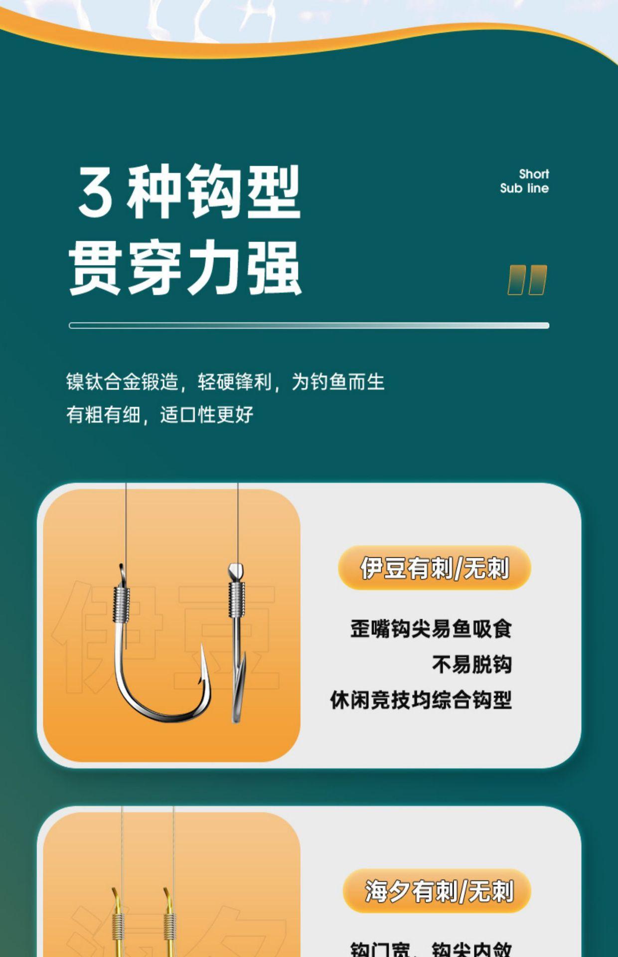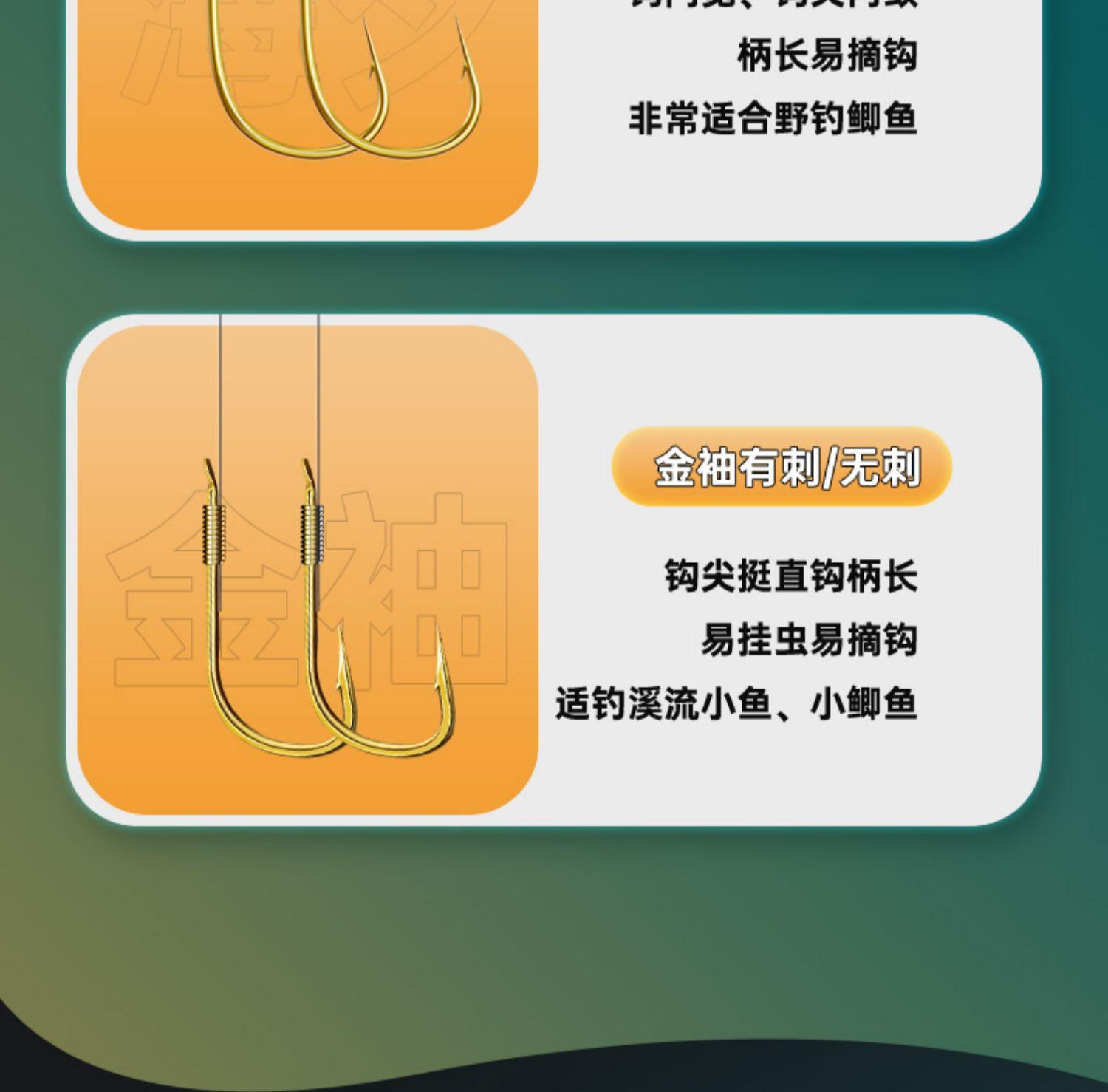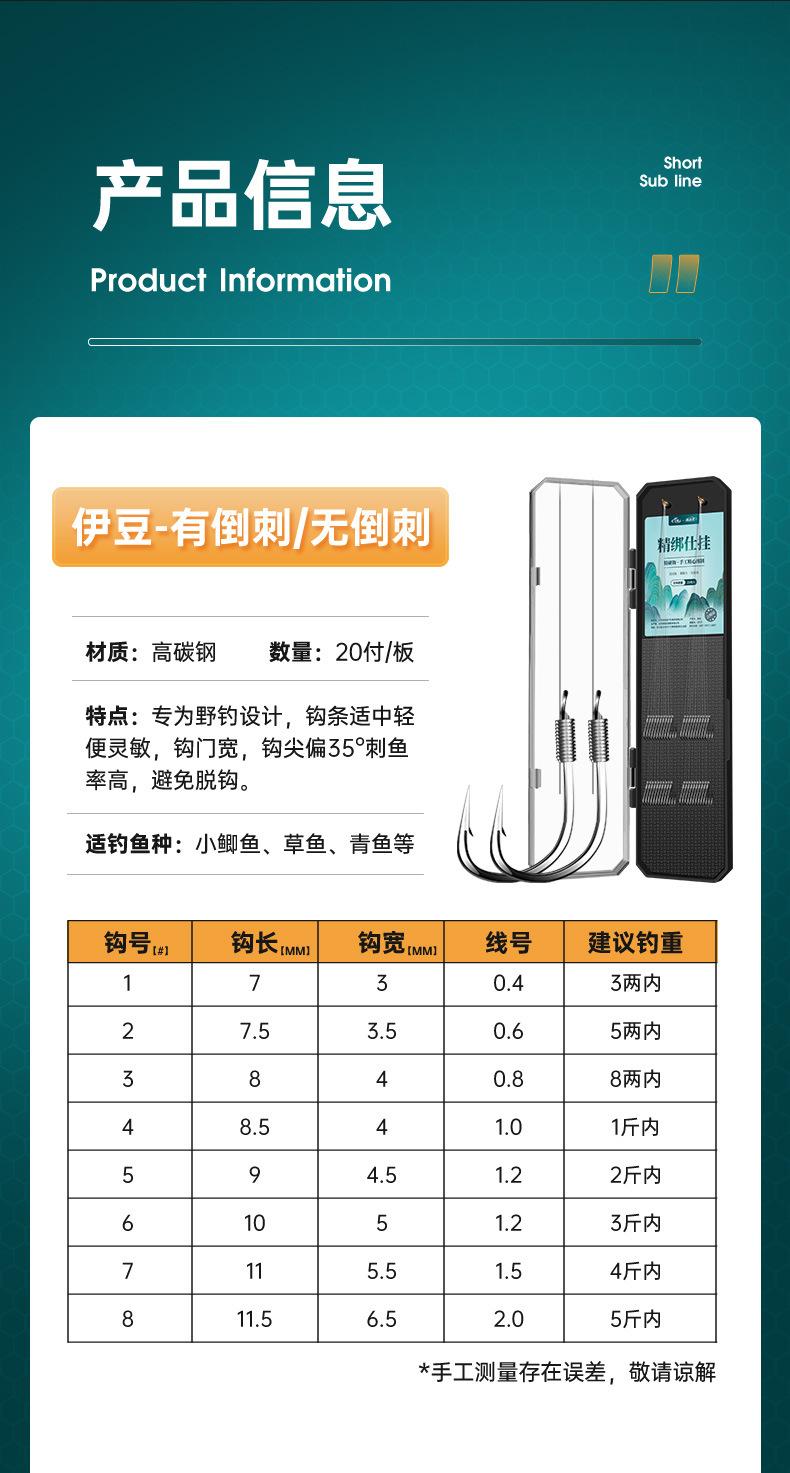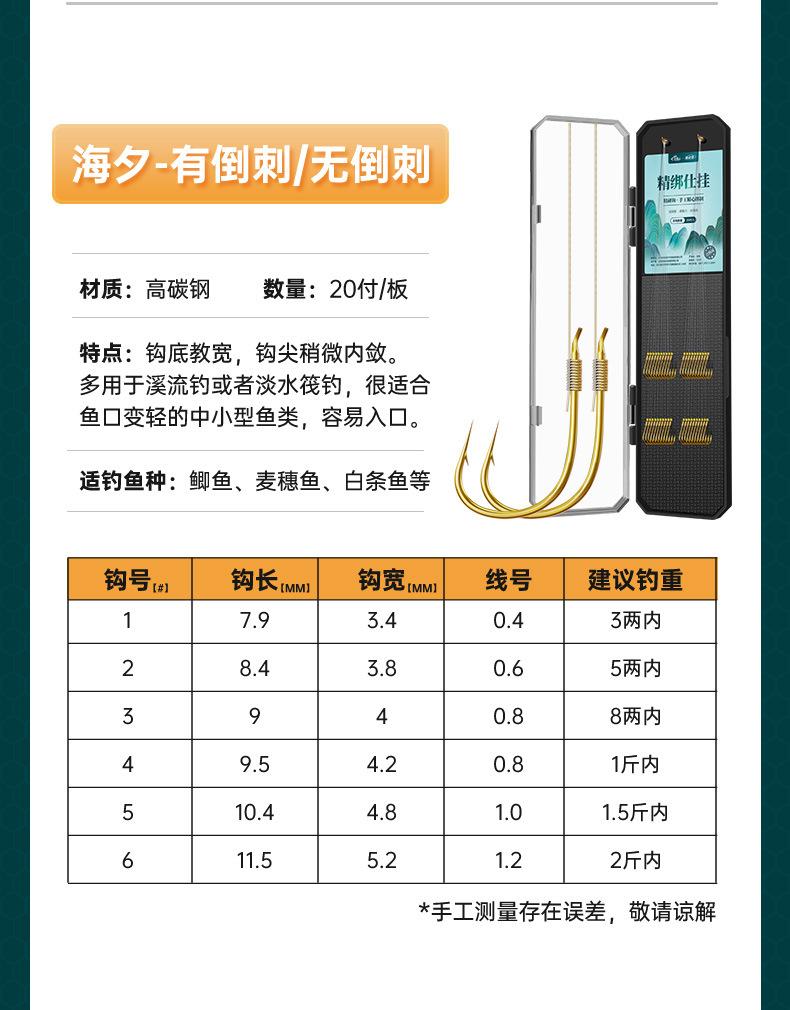 Anzuelo de pesca con hilo corto atado, anzuelo doble, producto terminado, traje de pesca, anzuelo de manga dorada Golden Sea Xi, equipo de pesca con manga dorada, anzuelo de carpa para pesca salvaje