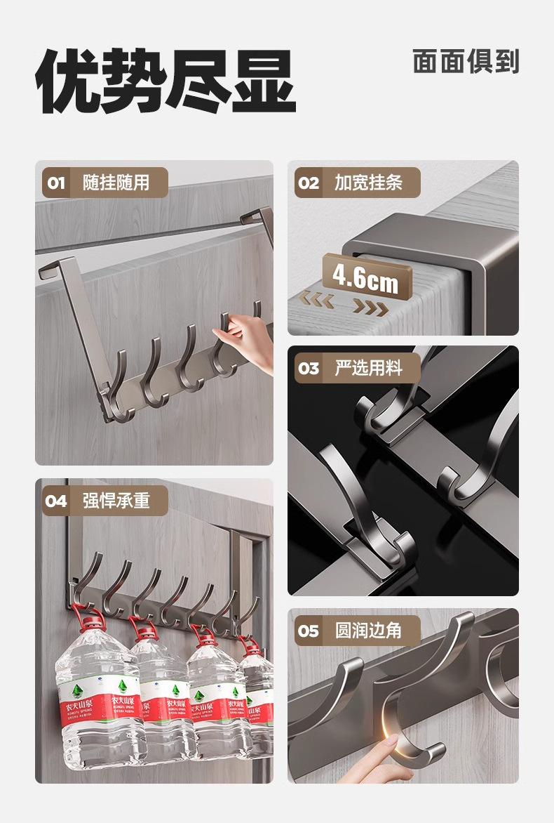 Gancho de puerta al por mayor, gancho de aluminio sin perforaciones para baño, dormitorio, almacenamiento, gancho de pared